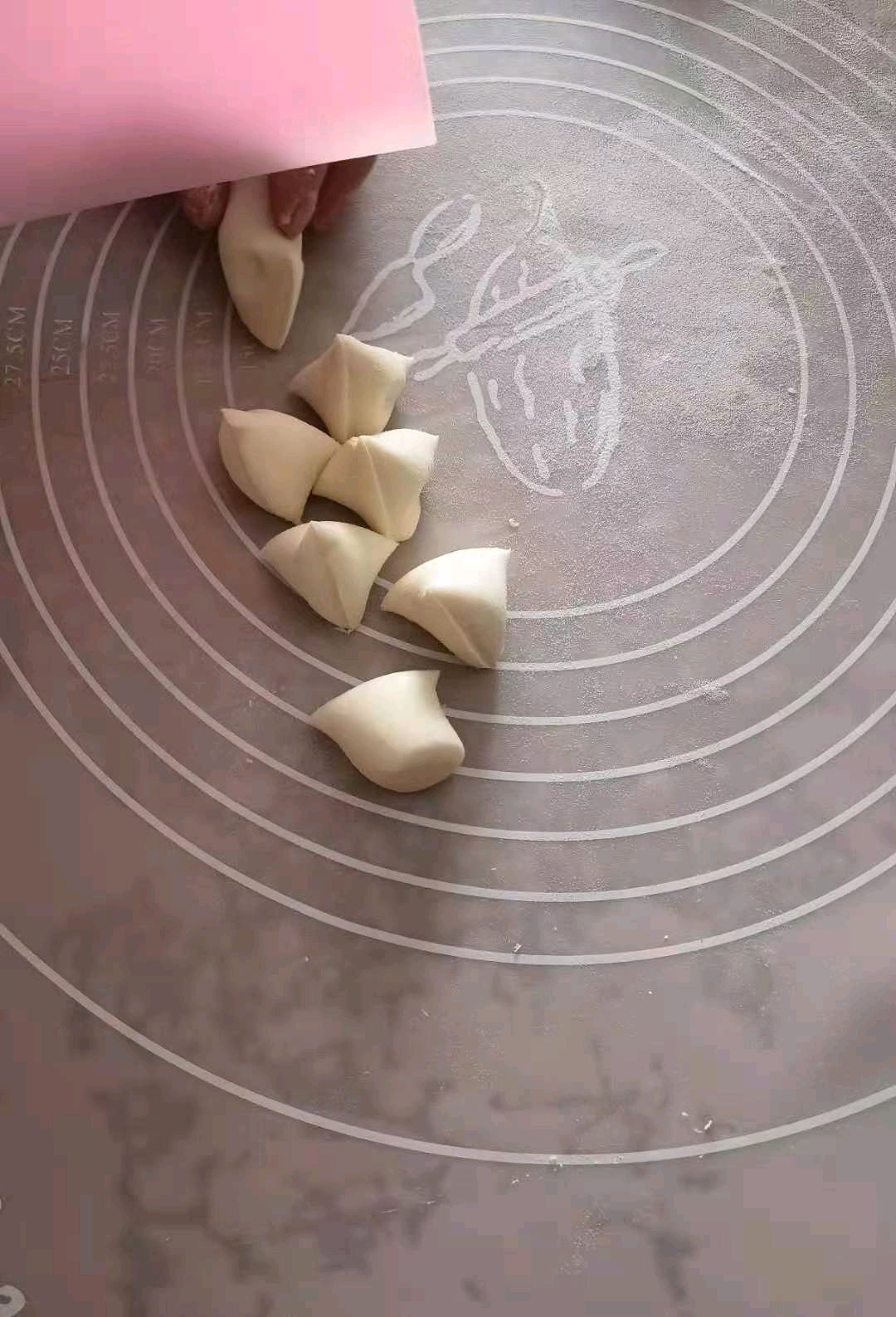 步骤13、取出醒好的面团,再次揉匀,分成几块。取一块搓成长条,切成大小均匀的剂子。