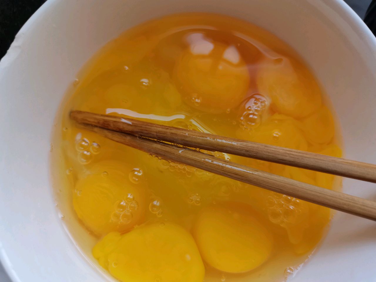 步骤5、鸡蛋放入碗中,加入盐,搅打均匀。