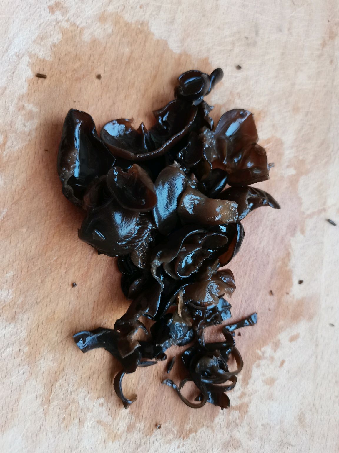 步骤9、泡发好的黑木耳,焯水后切成小丁。