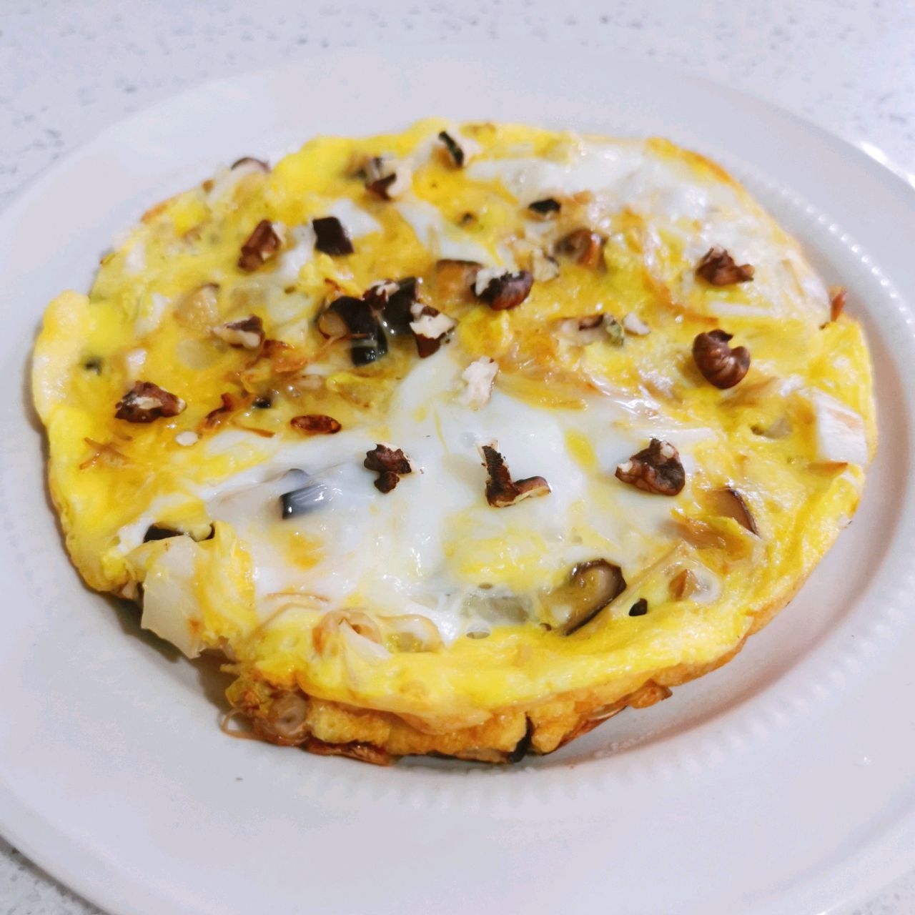 辅料:娃娃菜3片、盐一小撮、黑椒碎适量、鸡蛋2个、核桃碎