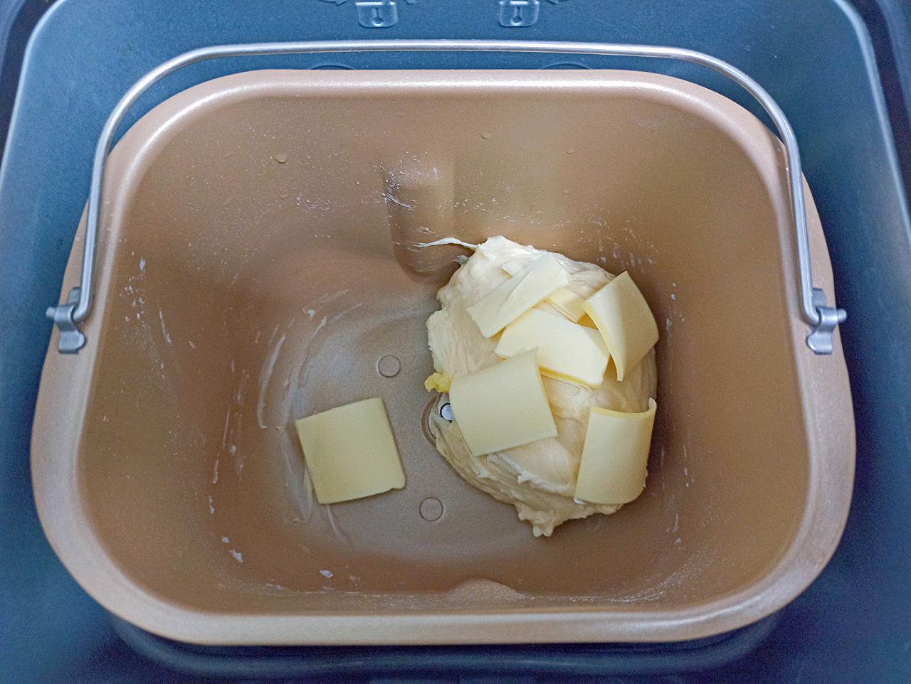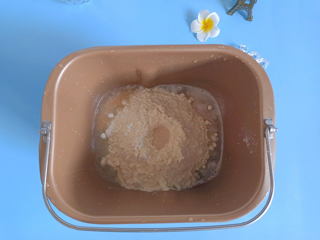 步骤1、除了黄油以外的所有材料放入面包机,搅拌程序2次