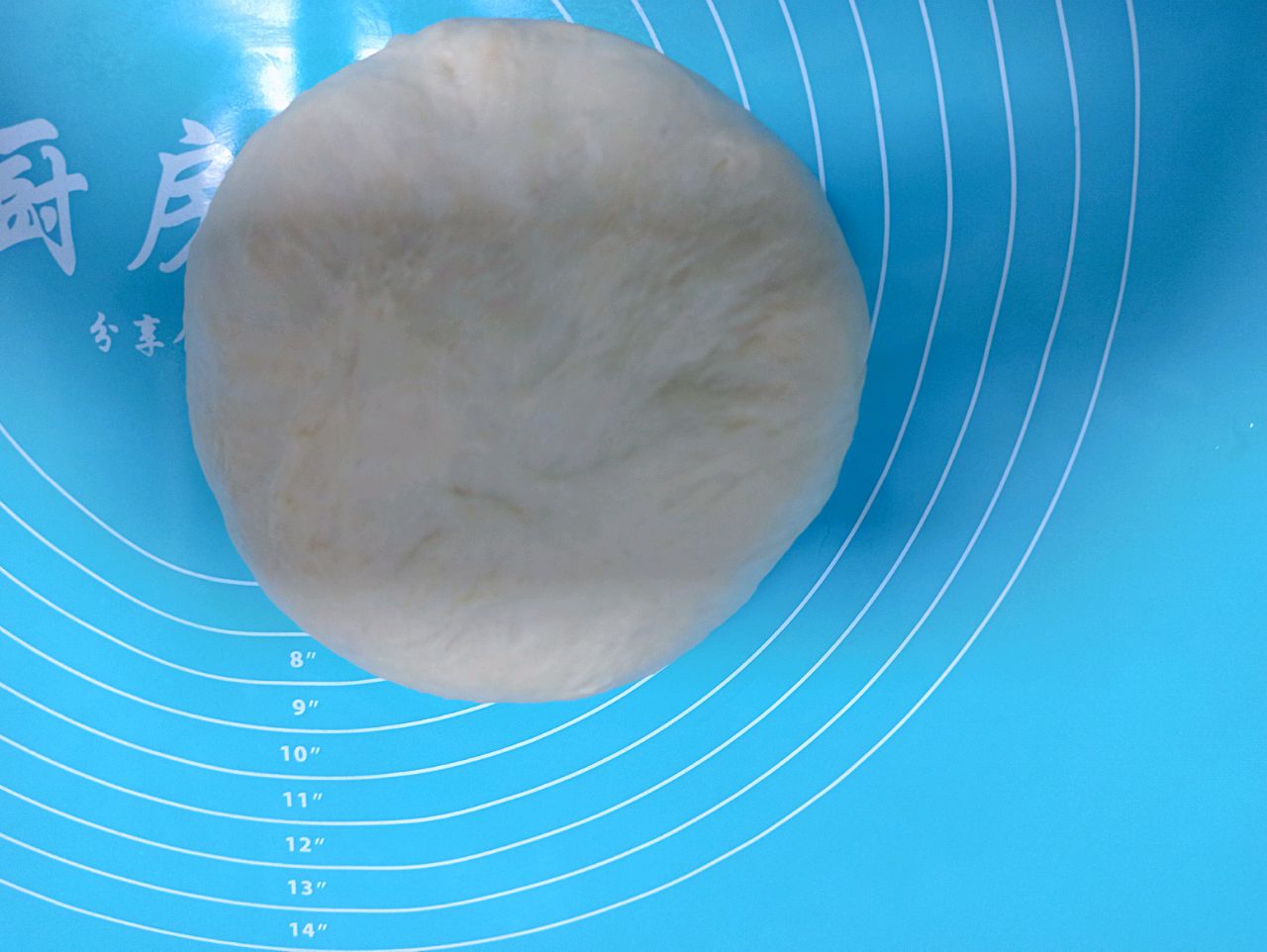 步骤11、烤盘上铺一张油纸,把面团捏紧的底部朝下
