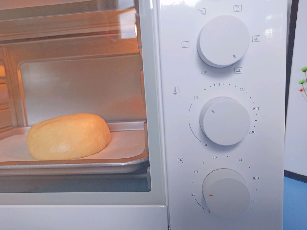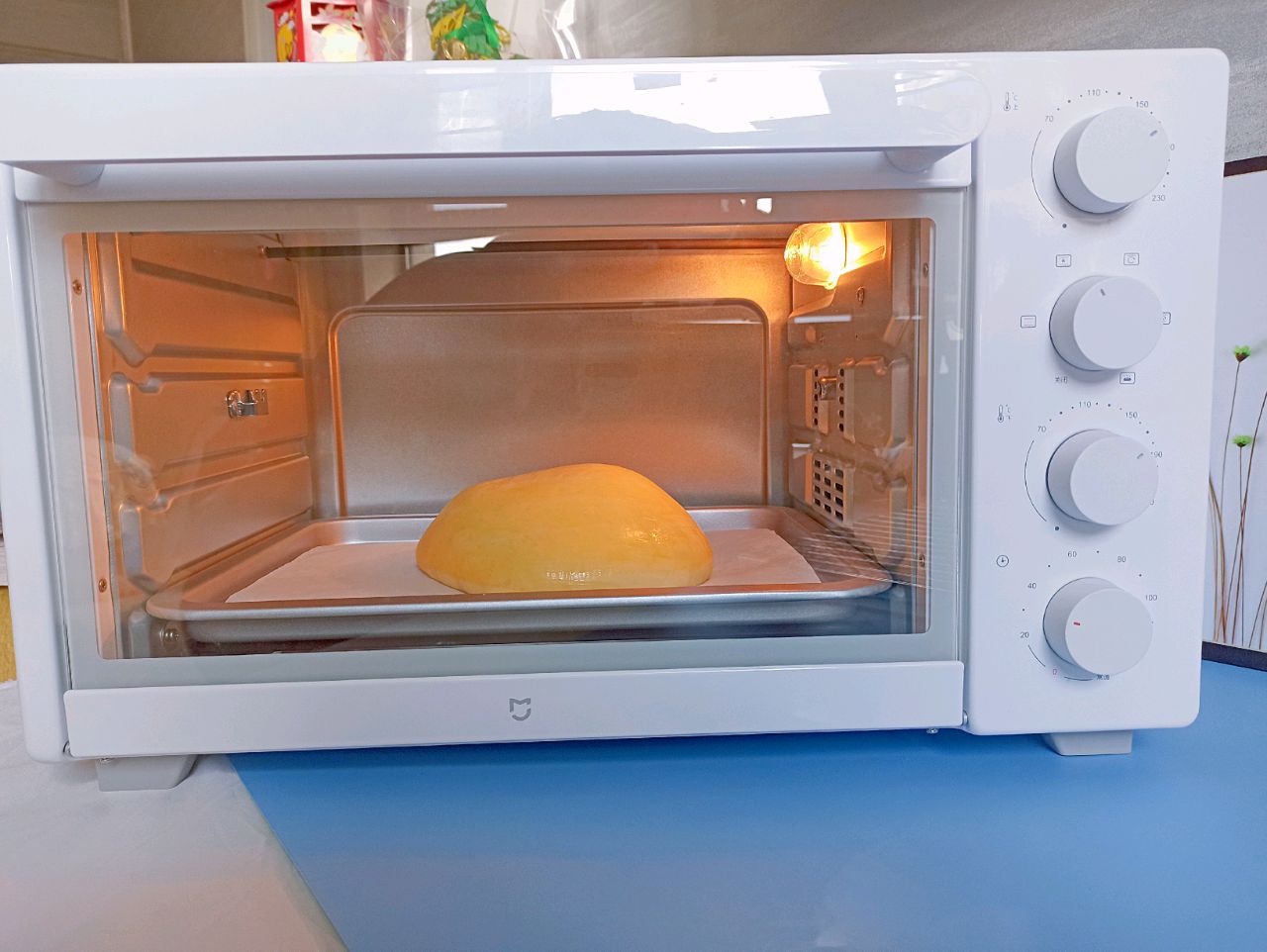 步骤12、放入烤箱,调制发酵程序。米家电烤箱40℃恒温发酵面团,也可以做酸奶。面团发酵对于面包类的食材烘焙非常重要,所以有发酵功能使我们的烘焙更得心应手。