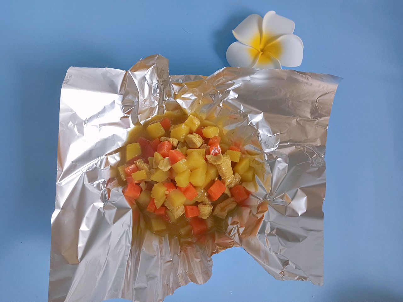 步骤7、取一张锡纸,盛入土豆鸡胸肉,包裹严实