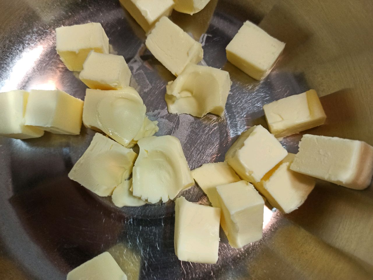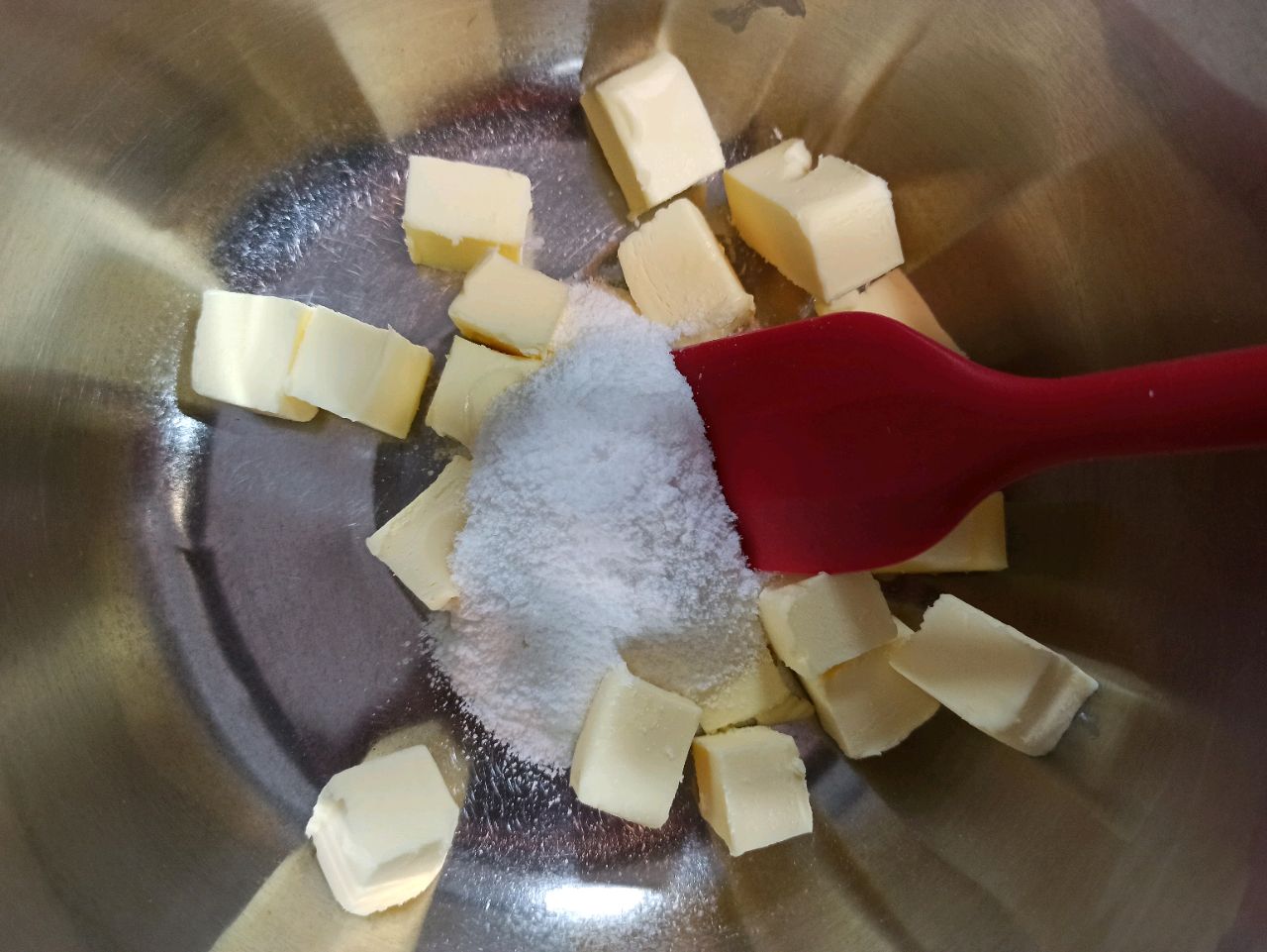 步骤1、黄油室温软化,能用手指轻松按压就可以了。