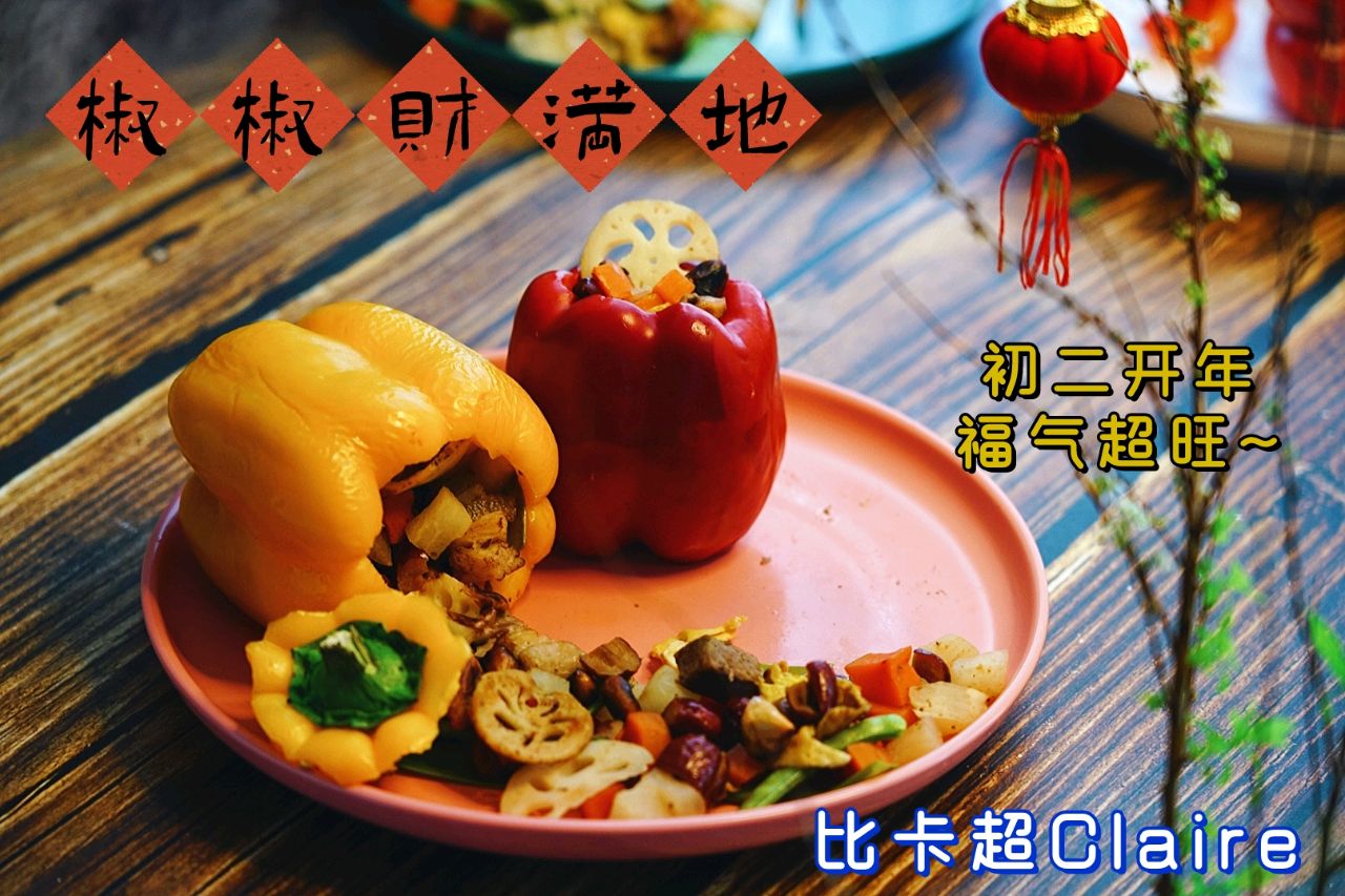 步骤9、将炒好丁,放入圆椒内,摆好盘,完成