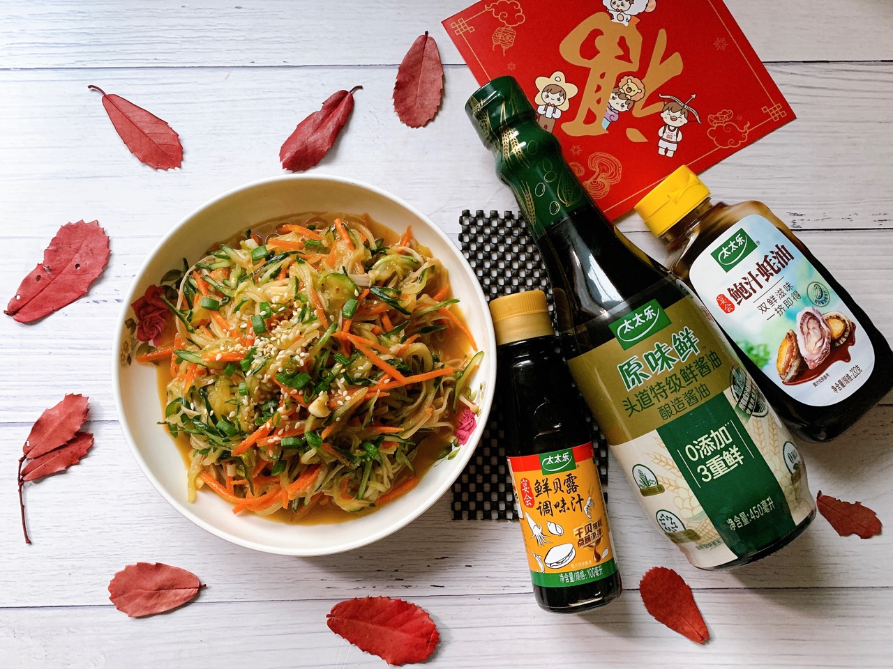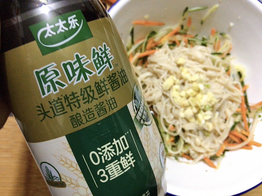 辅料:黄瓜一根、太太乐原味鲜特级酱油2勺、蒜少许、小葱一小戳、芝麻香油少许、芝麻少许、鲍汁蚝油适量、盐适量、鲜贝露1勺