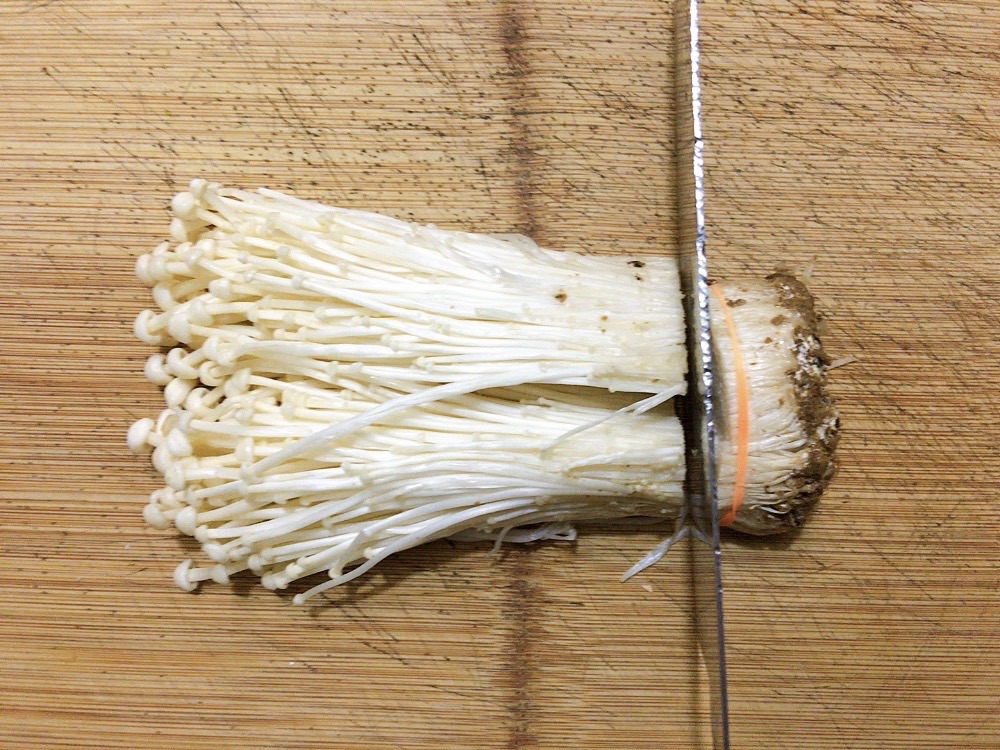 步骤2、金针菇切去根部