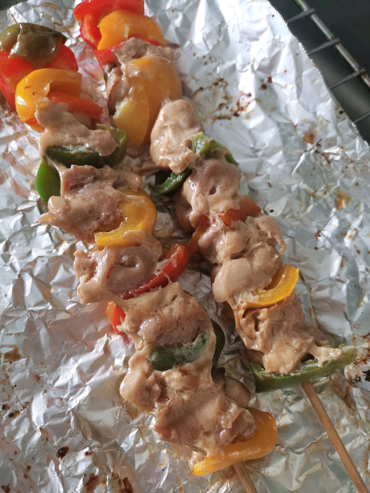 没有什么难度,需要鸡肉提前腌制入味,没有时间的话最少要腌制两三个小时。我做的串儿虽然少,但比较长比较大。所有食材可以翻倍,根据自己的量来决定。彩椒放多少都行,我做的后来剩了一些就也都串在签子上了。