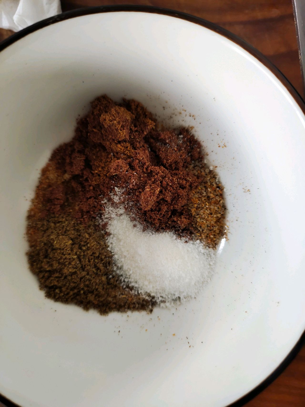步骤3、烤肉料、花椒面、孜然、大香粉、细面味精混合均匀。