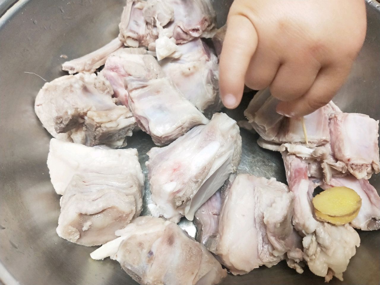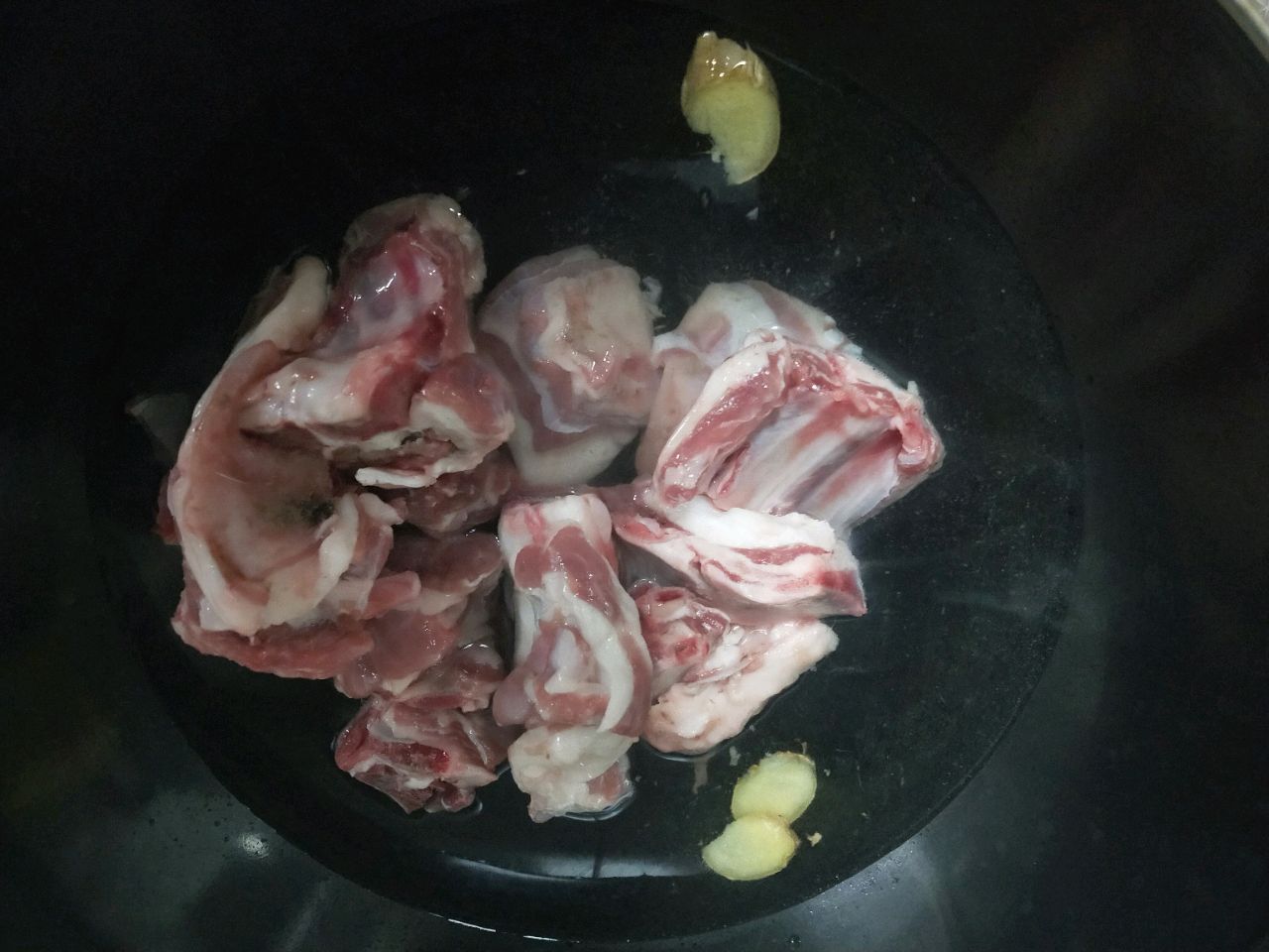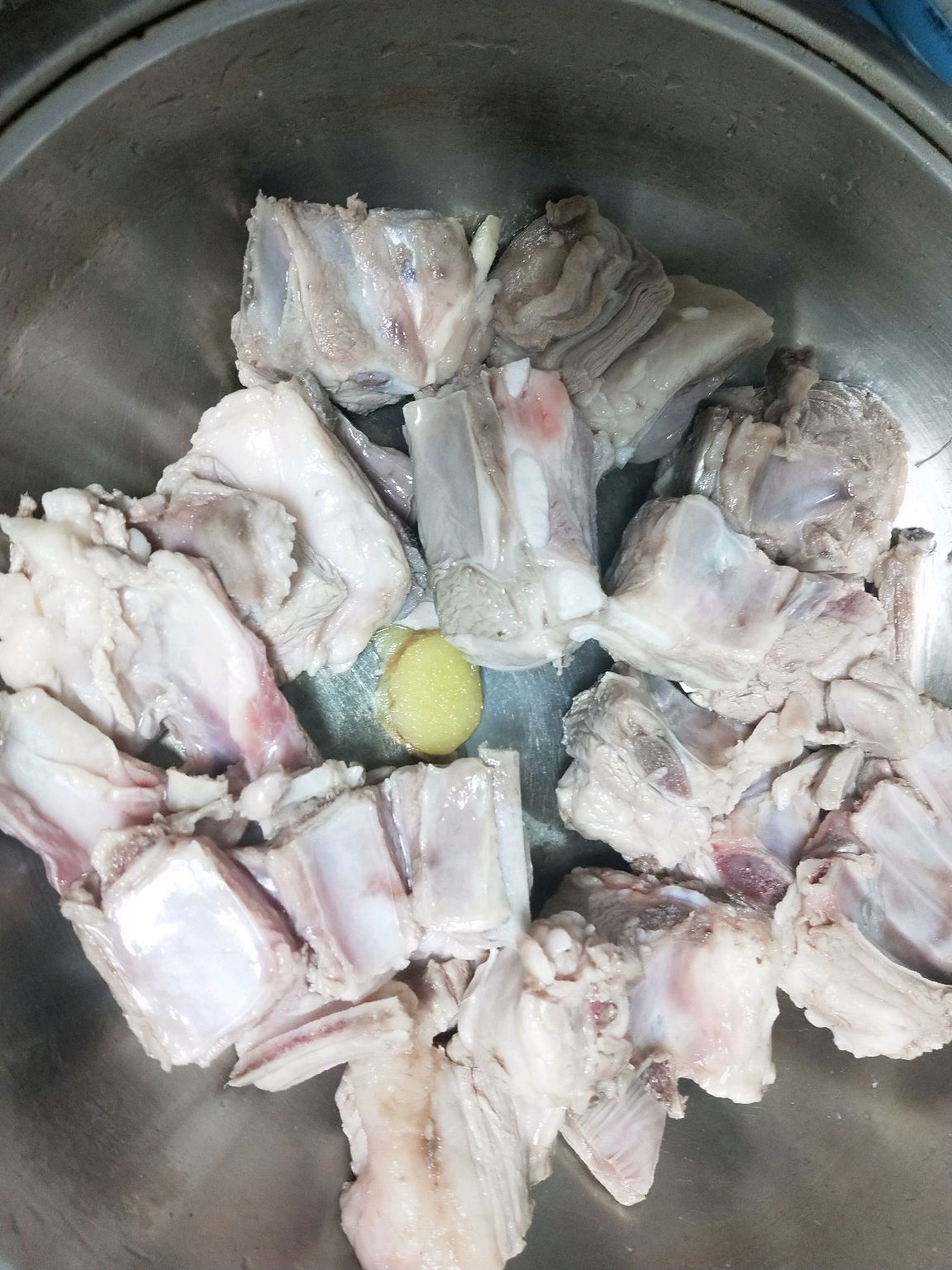 步骤1、羊排剁小,放入姜片焯水,去掉血水