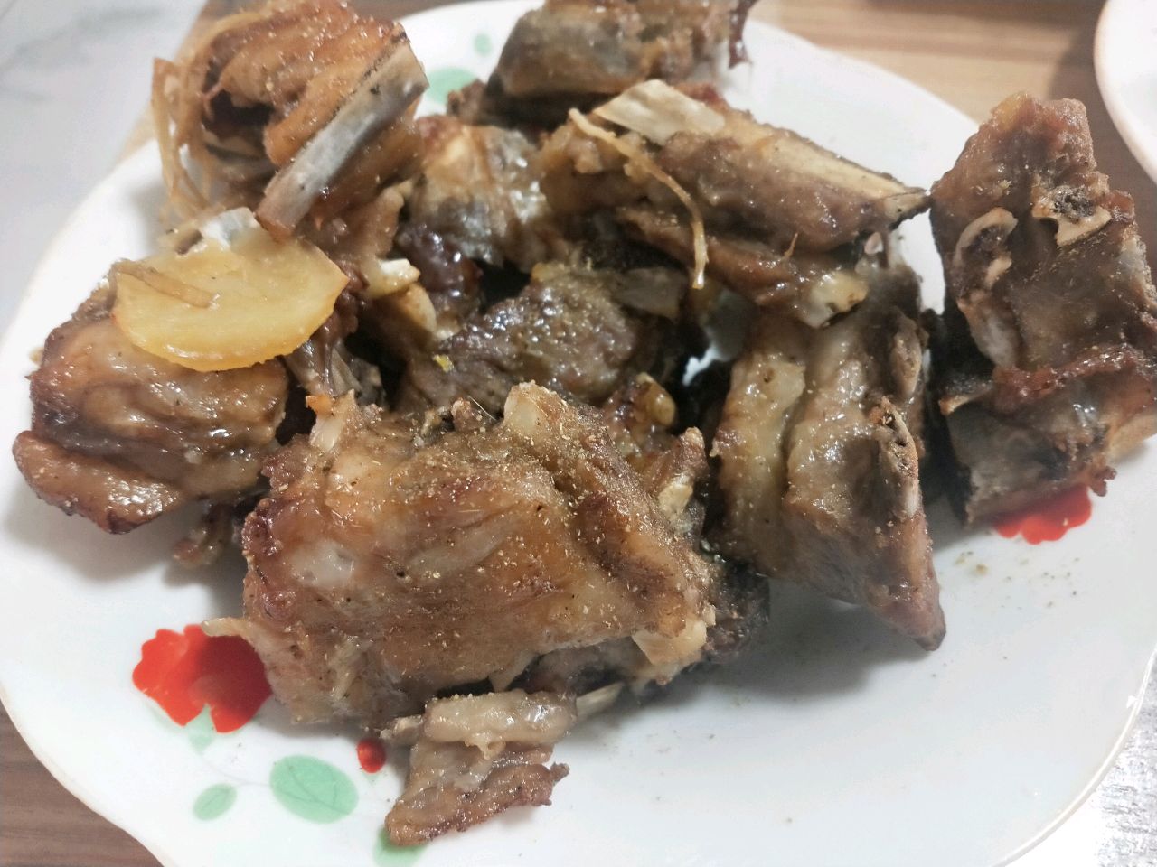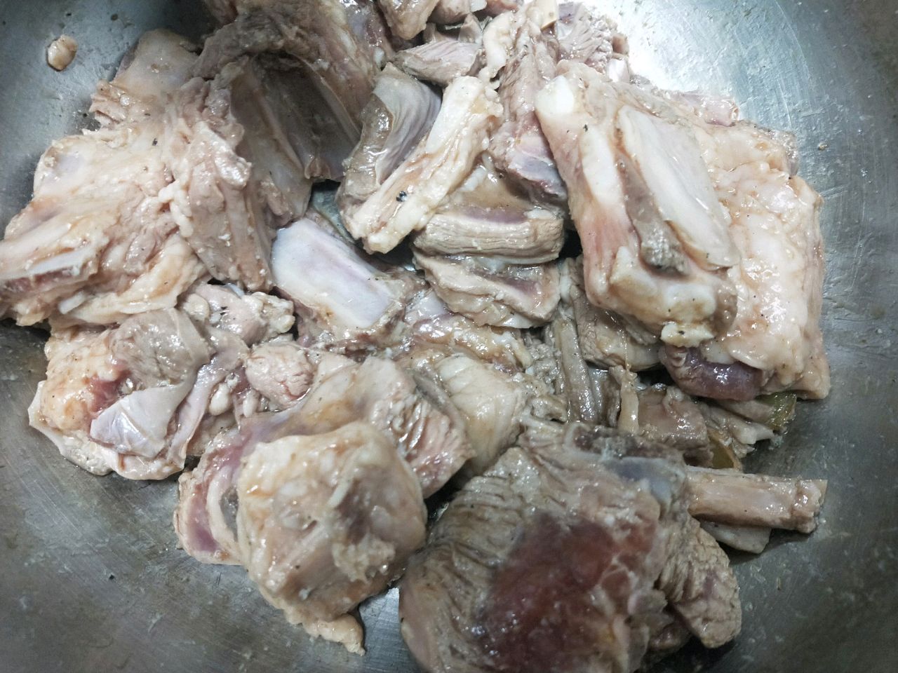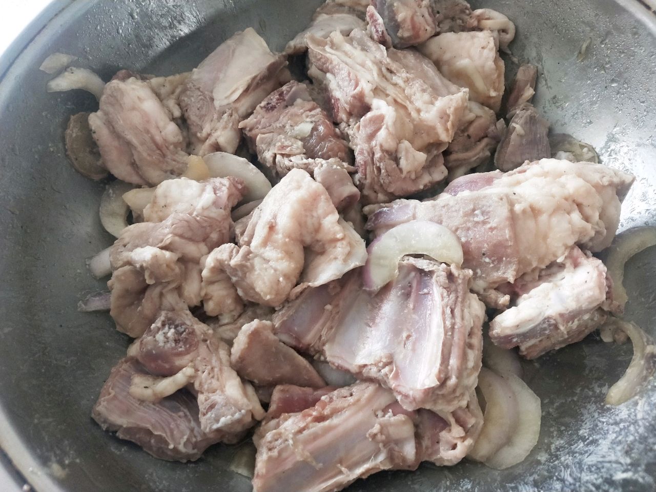 步骤1、羊排剁小,放入姜片焯水,去掉血水