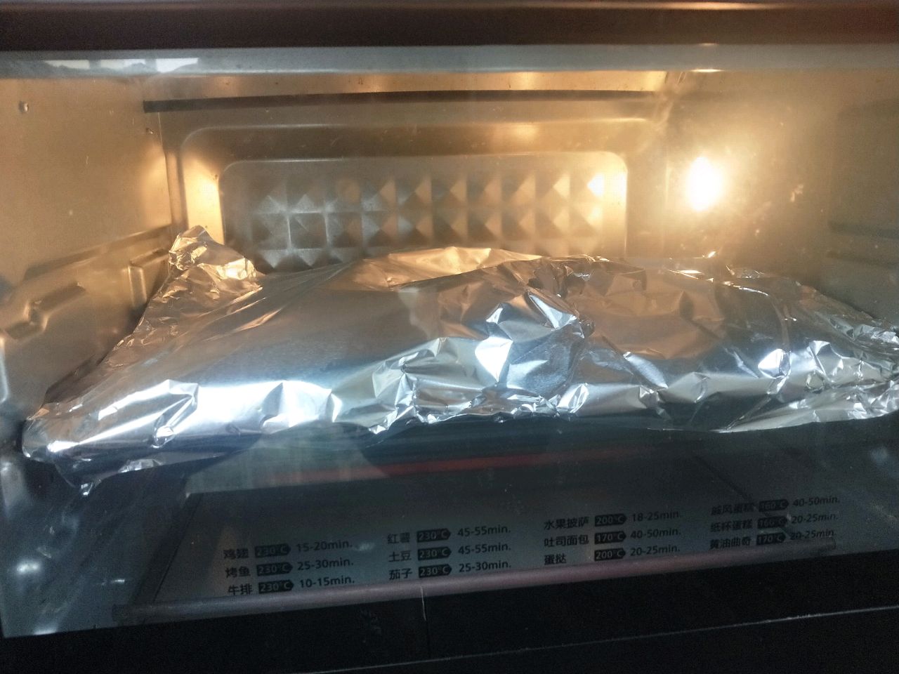 步骤10、在羊排上再铺一层锡纸密封,为了让羊排保味和油
