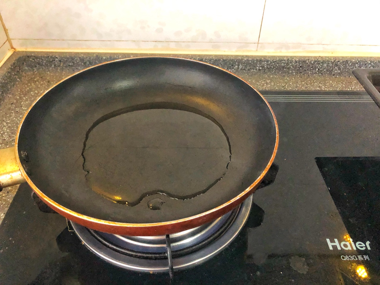 步骤6、平底锅大火烧至冒出少许青烟后保持大火倒入植物油。