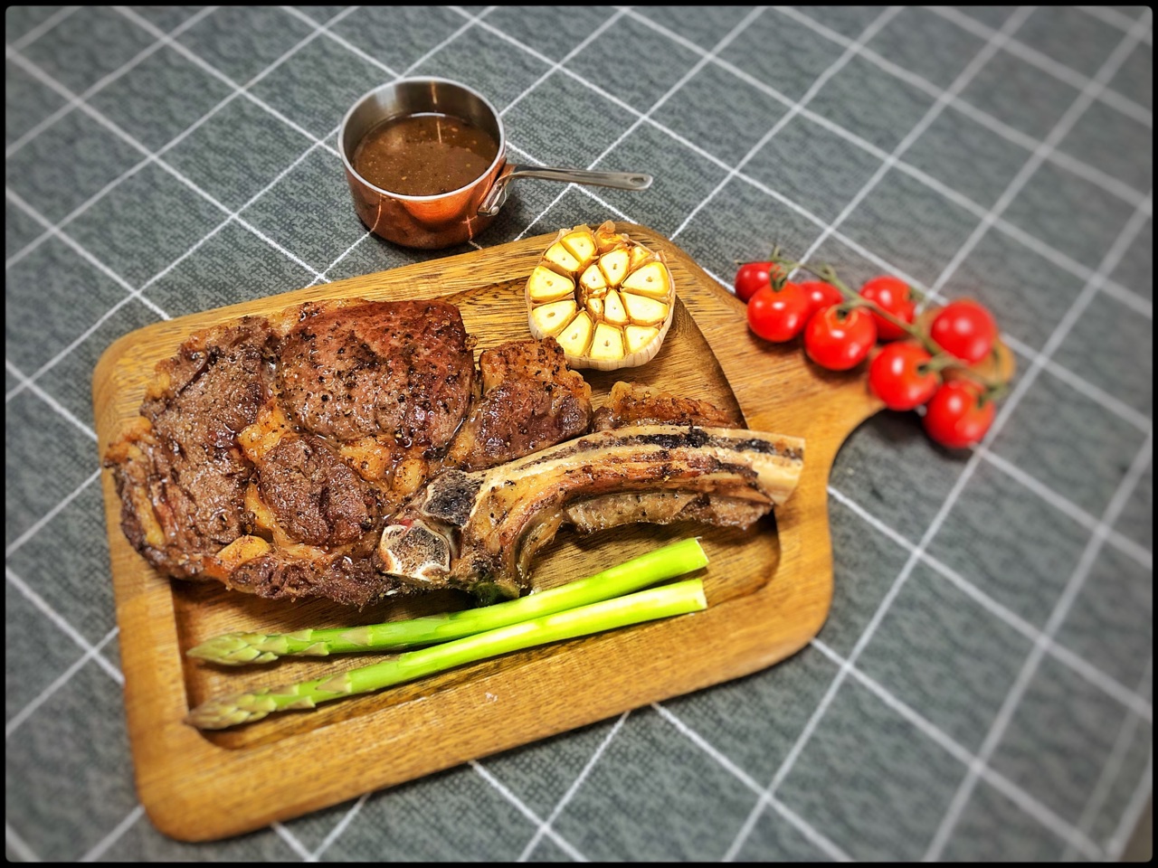 肉类里我百吃不厌的永远是牛肉。今年是牛年,犒劳一下如辛勤老黄牛一般忙碌了一年的自己,第一次做五分熟的烤战斧牛排,个人认为比较成功的。愿新的一年里每个人都顺顺利利的......