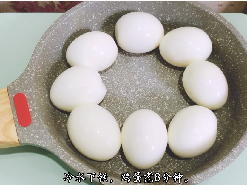 步骤1、煮熟鸡蛋扒壳备用