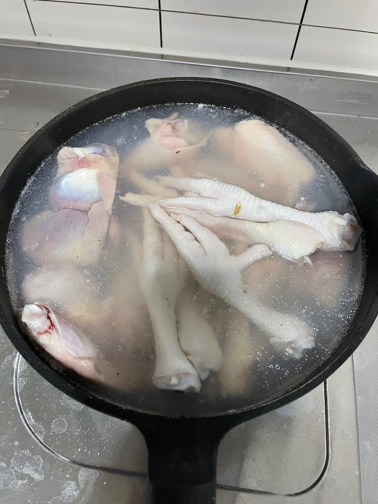 步骤4、换另一锅煮鸡鸭类也是煮沸撇去浮沫冷水冲一下