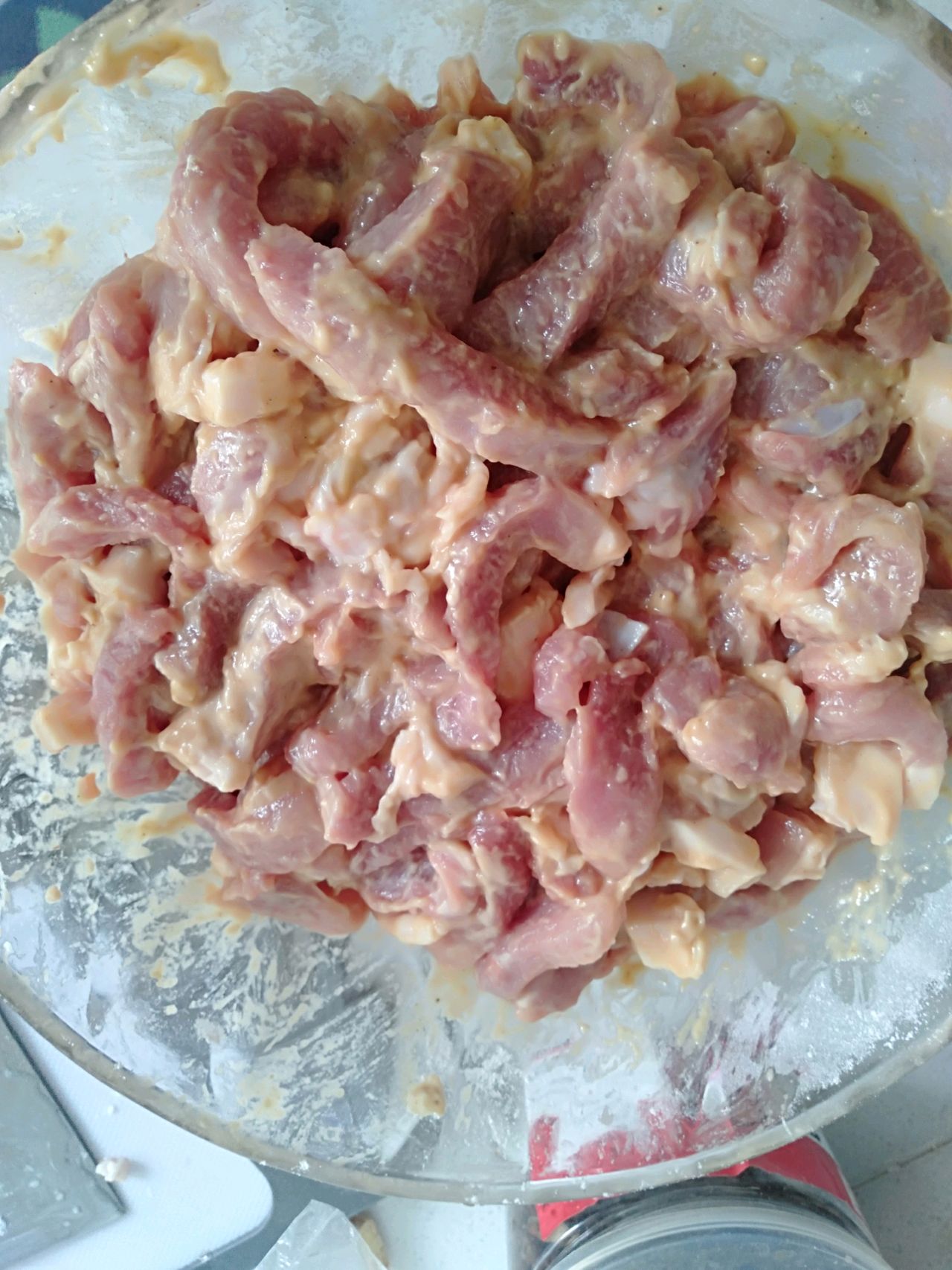 步骤1、里脊肉洗干净切条,
