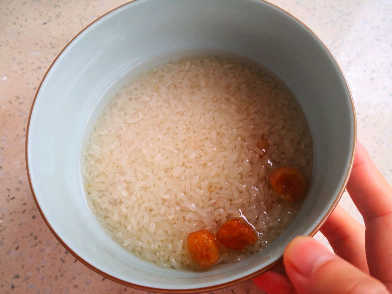 步骤1、阴米是重庆的小伙伴寄来的,糯米蒸熟阴干的,我用水淘了一遍。干桂圆肉洗净沥干。