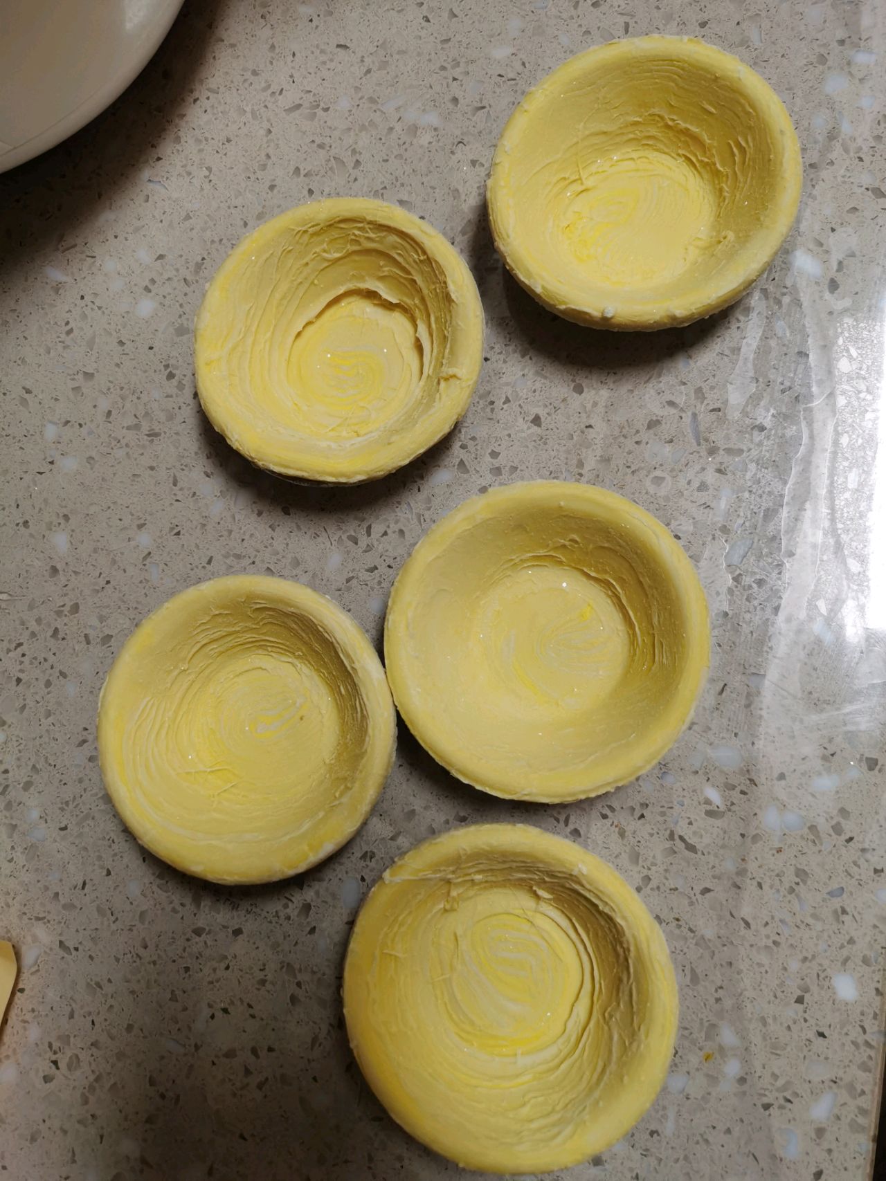 步骤1、蛋挞皮拿出来常温解冻五分钟