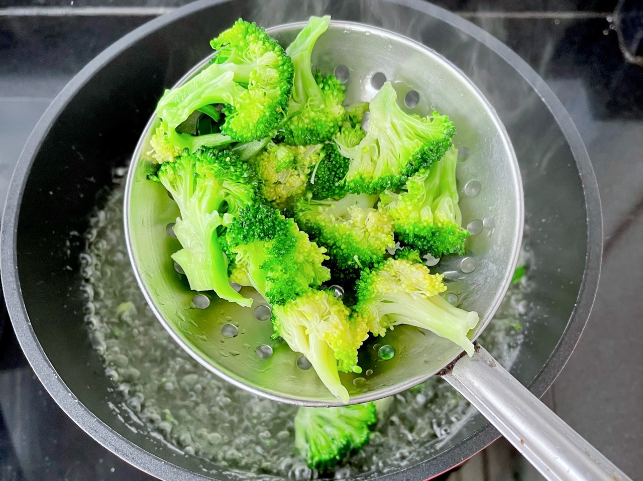 步骤3、焯至断生变色的时候,捞出过冷水沥干水分。