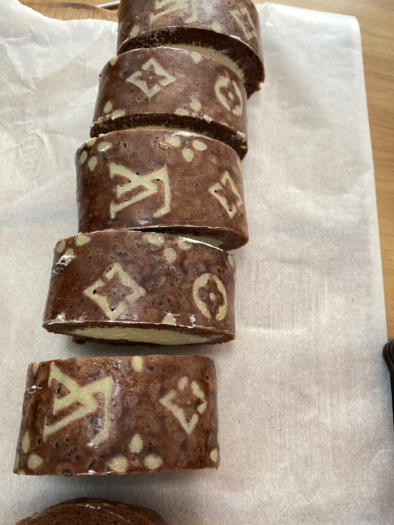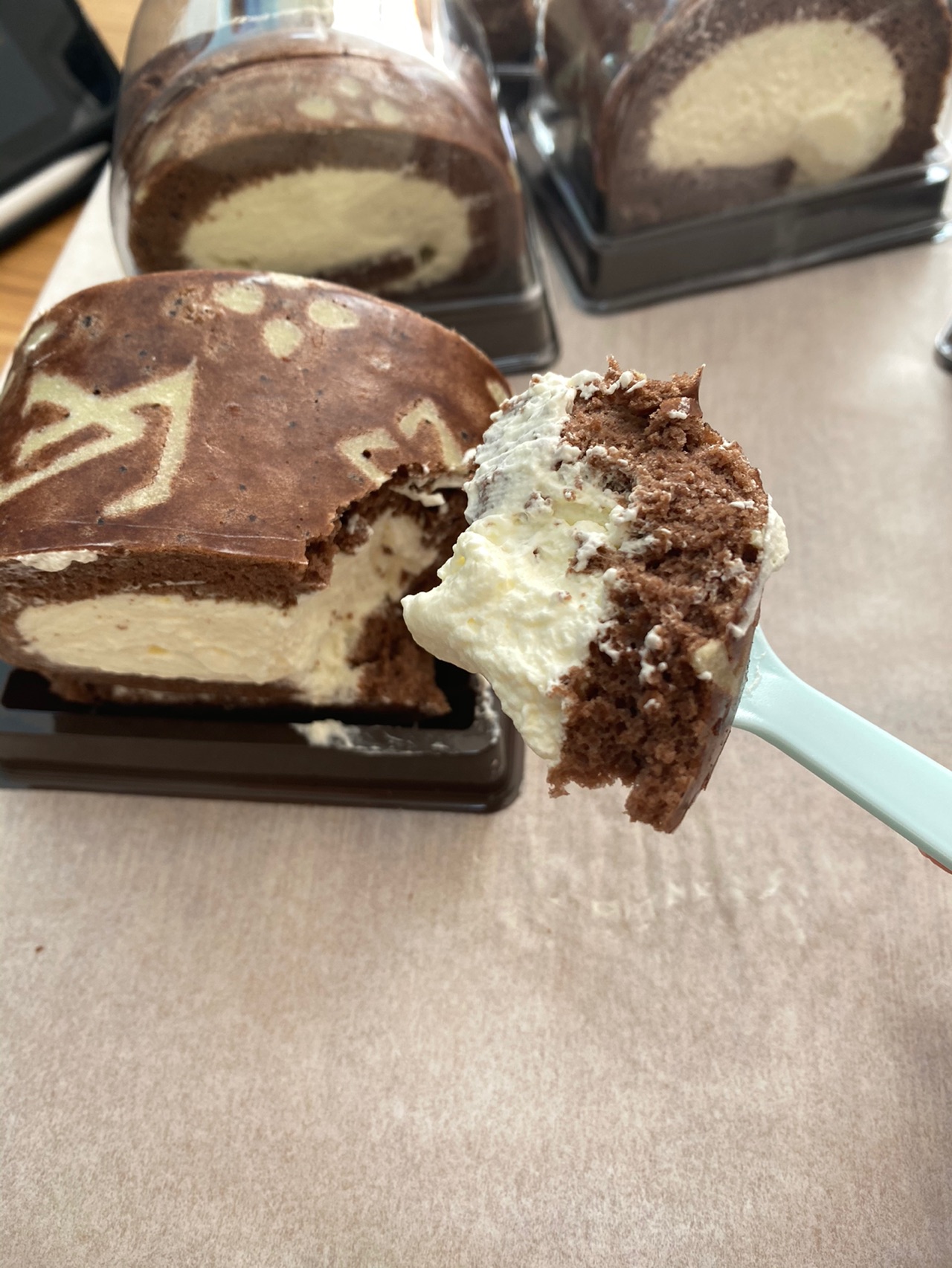 辅料:糖粉15克、低筋面粉15克、蛋白5克、蛋糕卷(150度烘烤28分钟)、鸡蛋(蛋清+蛋黄)4个、玉米油45克、低筋面粉45克、纯牛奶50克、可可粉10克、细砂糖45克、奶油部分:、淡奶油250克、白砂糖20克