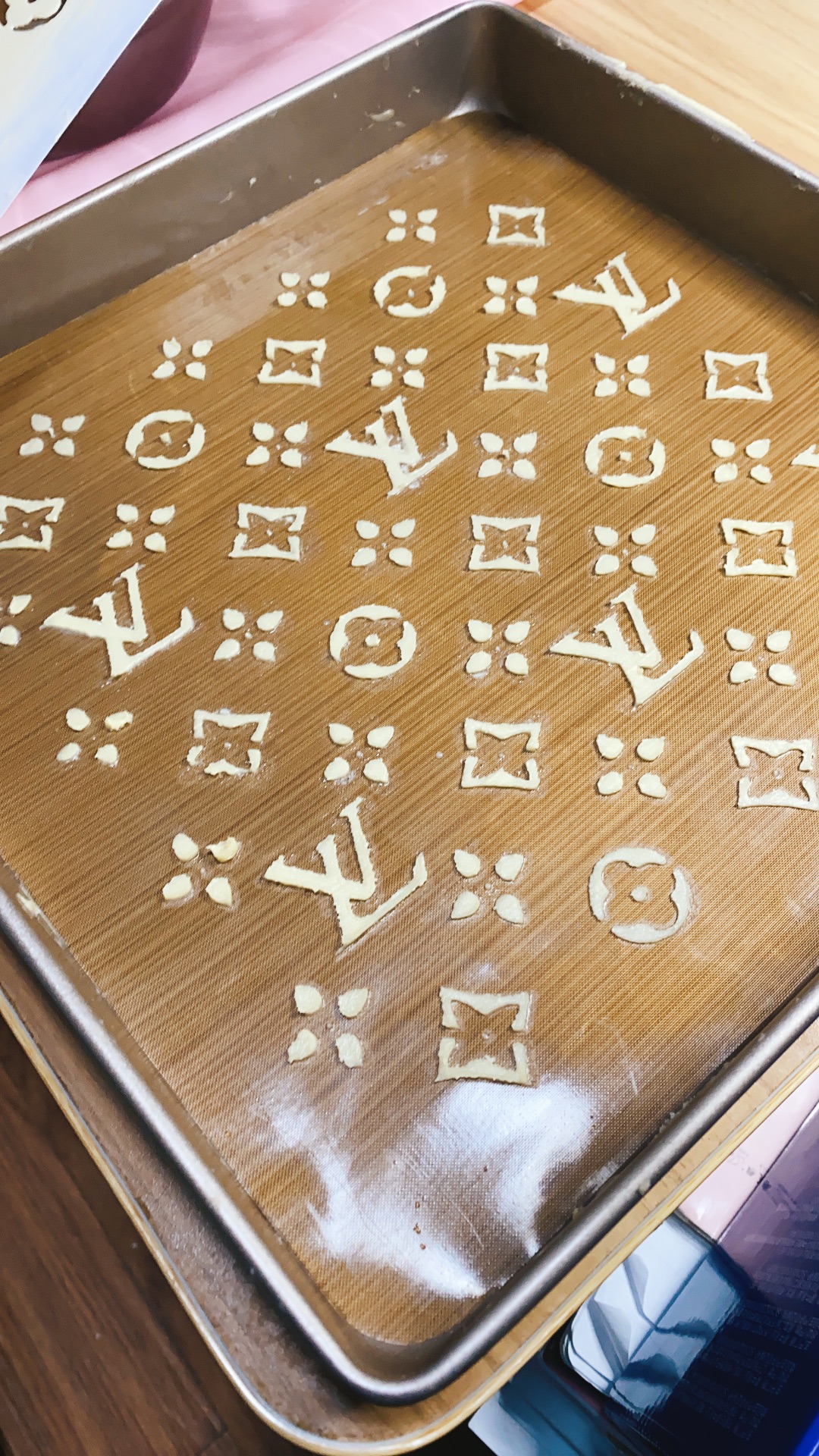 步骤2、LV印花部分:软化的15g黄油+15g低粉+15g糖粉搅拌均匀,加入5g蛋清翻版均匀。