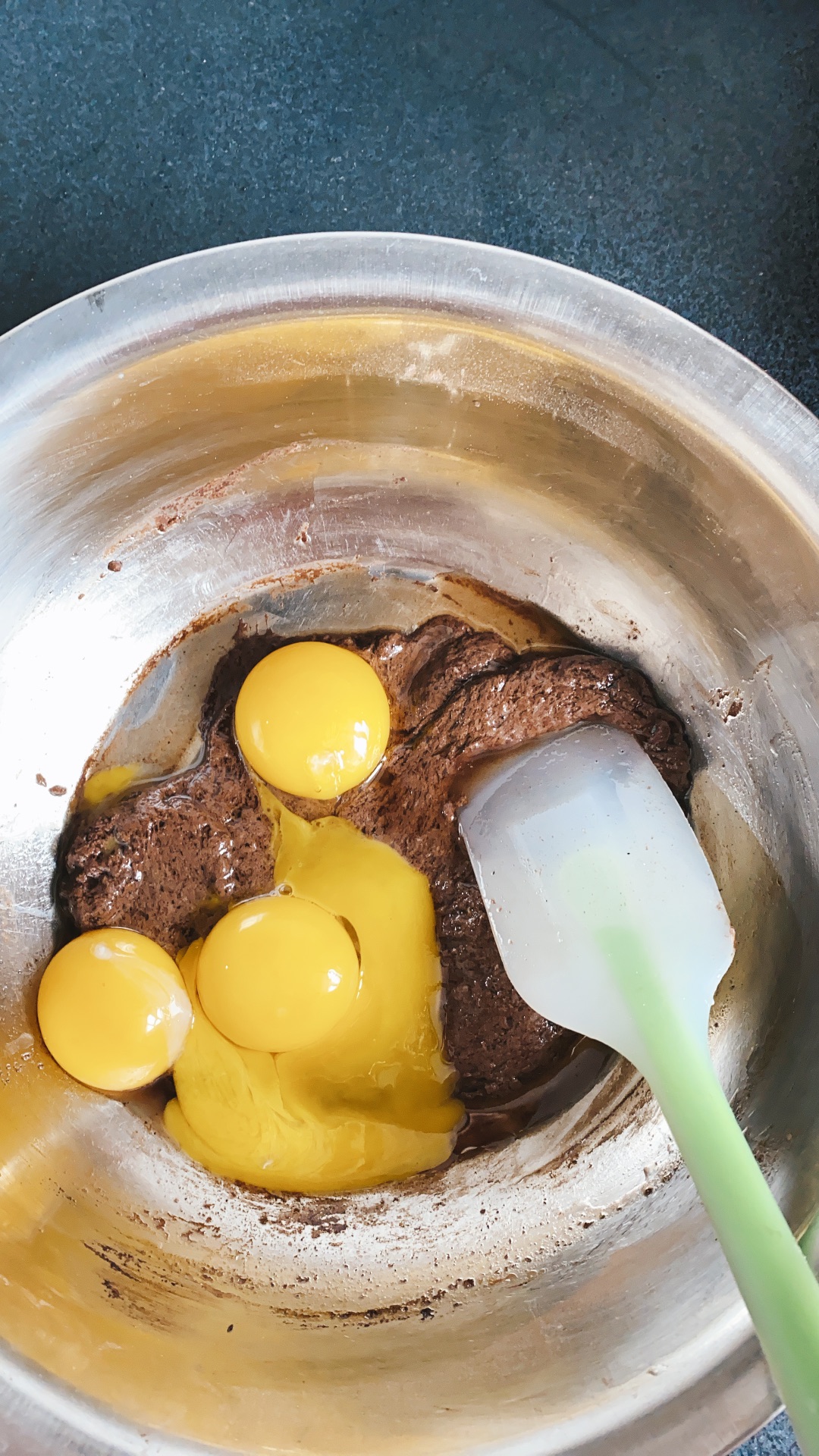 步骤7、加入四个蛋黄,搅拌均匀待用。