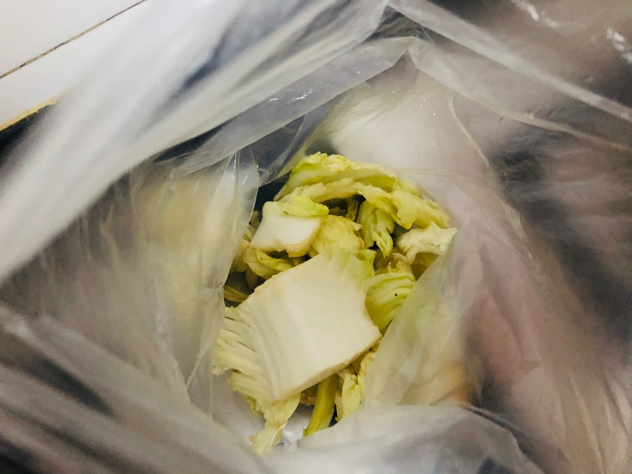 辅料:西红柿1个、海南辣酱1勺、火腿肠1根、油适量、生抽1勺、郫县豆瓣酱适量、老抽1勺、白菜几小颗、香油1勺