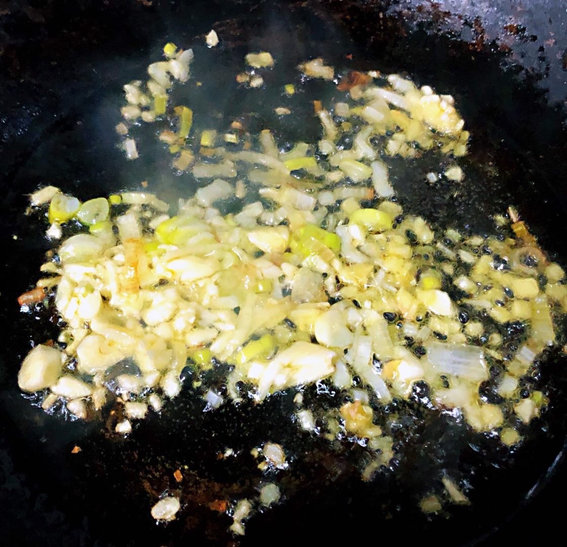 步骤6、锅中倒入底油加热放入葱姜蒜爆香