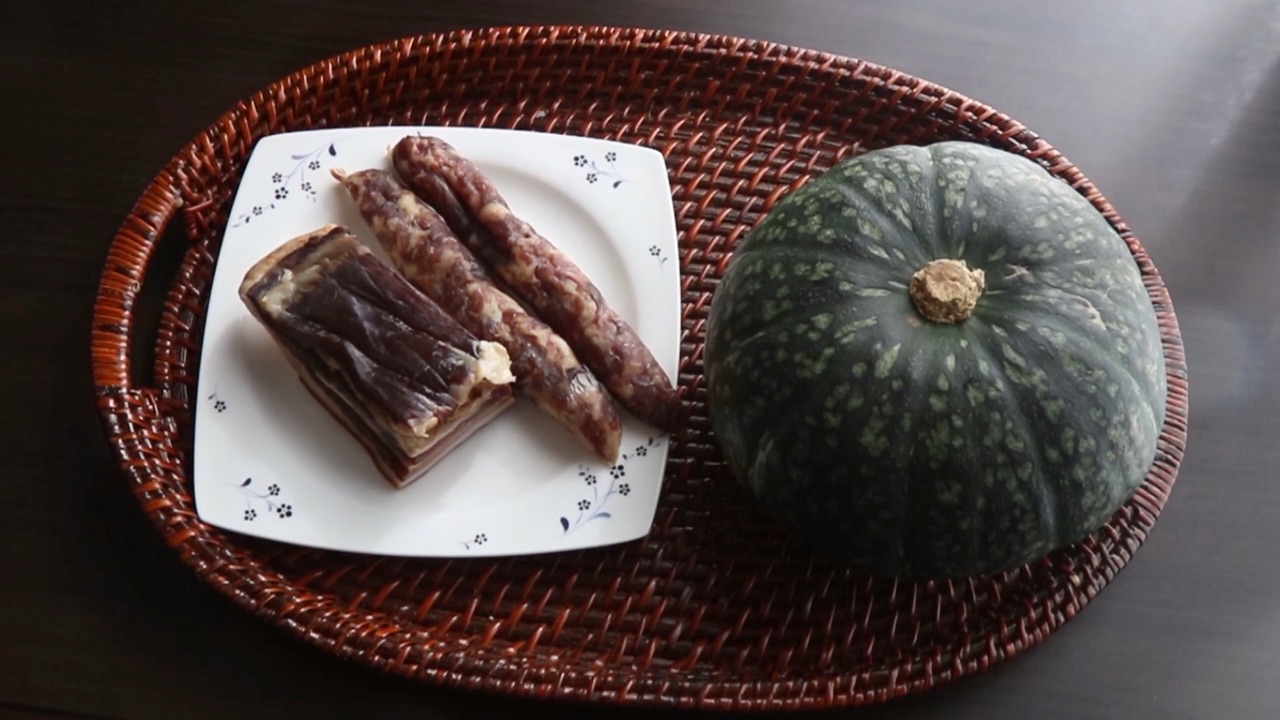主料:小南瓜1/2个、香肠1-2根
