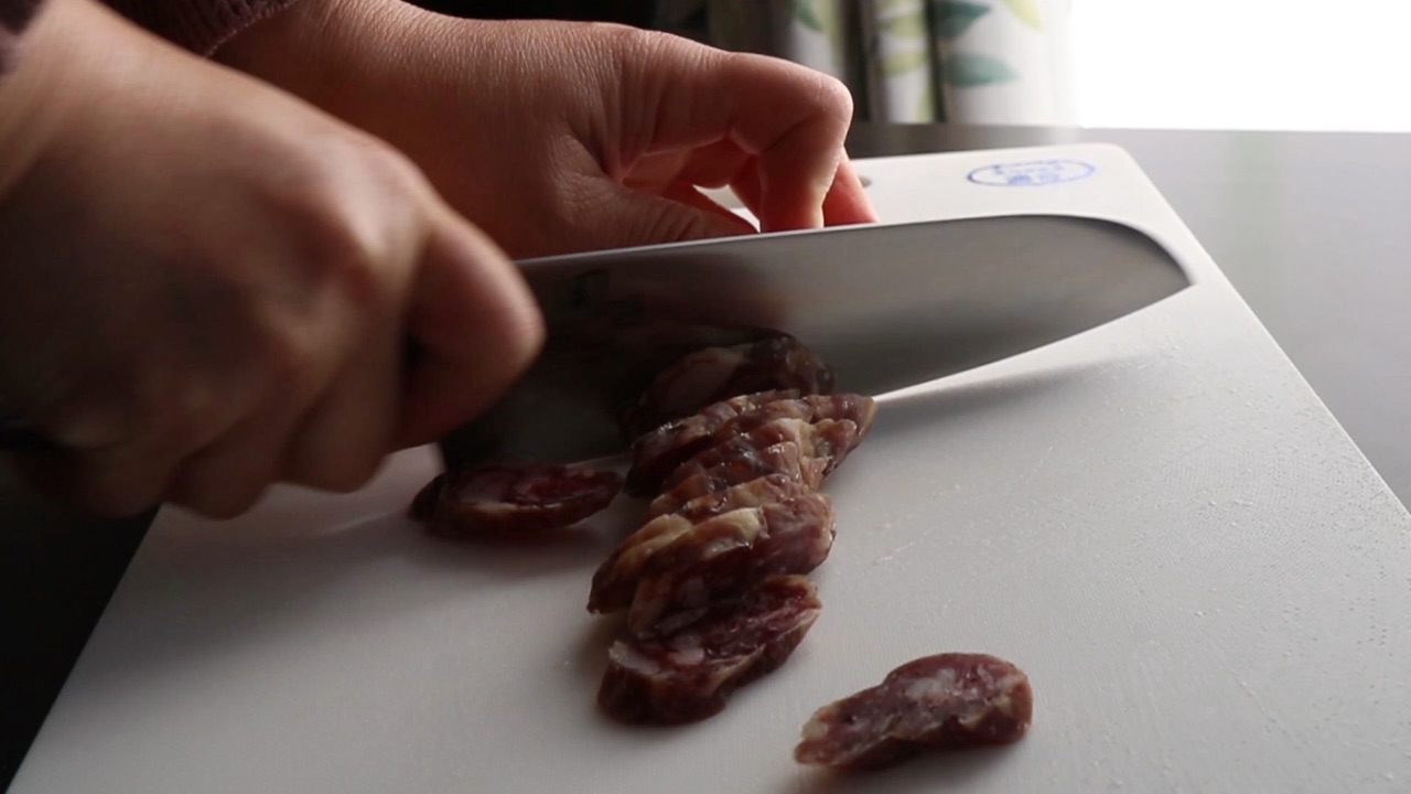 步骤4、腊肠切片。