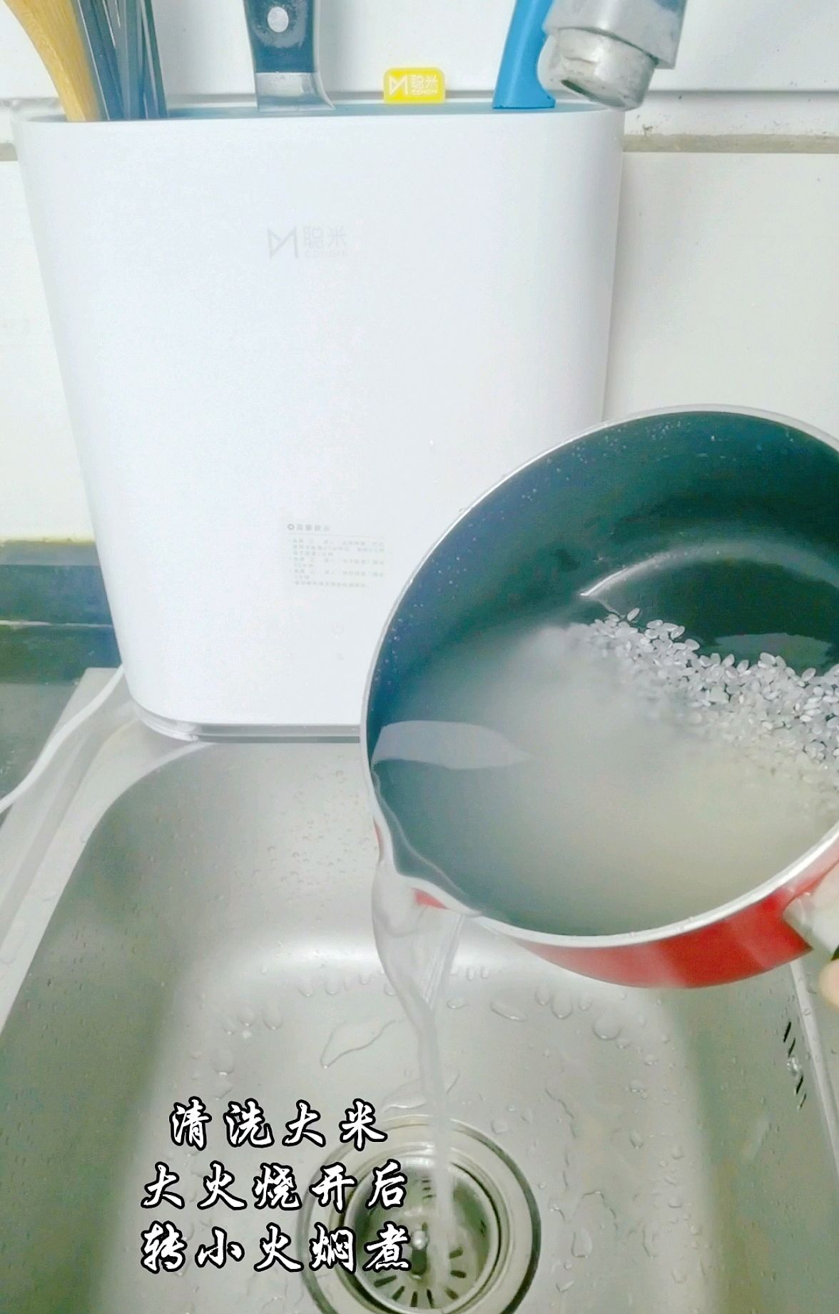 辅料:皮蛋1个、牛肉20克、姜葱少许