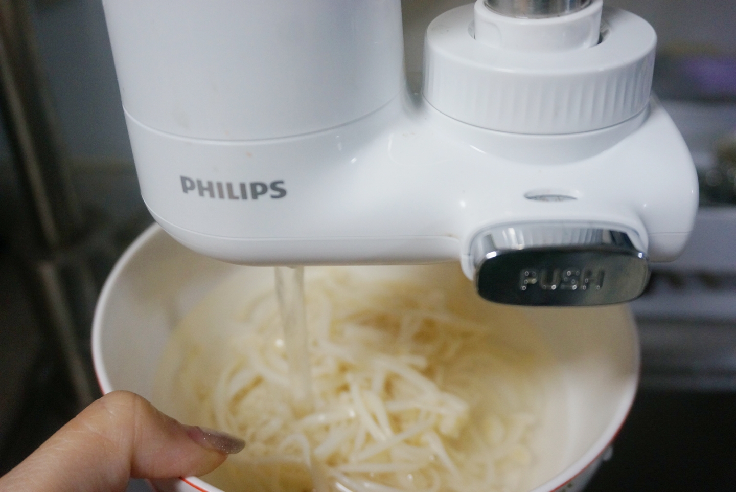 步骤2、锅中放适量的水,烧开后先放入金针菇焯熟,捞出过凉。冬天天气冷,所以要用温开水过凉,不要用自来水或者是凉水。