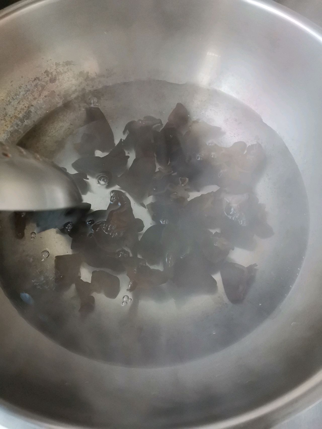 辅料:白糖1茶匙、芝麻油1/2勺、香菜末1勺、黄瓜一根、木耳10克、花生一把、腐竹100克、葱一根、蒜3瓣