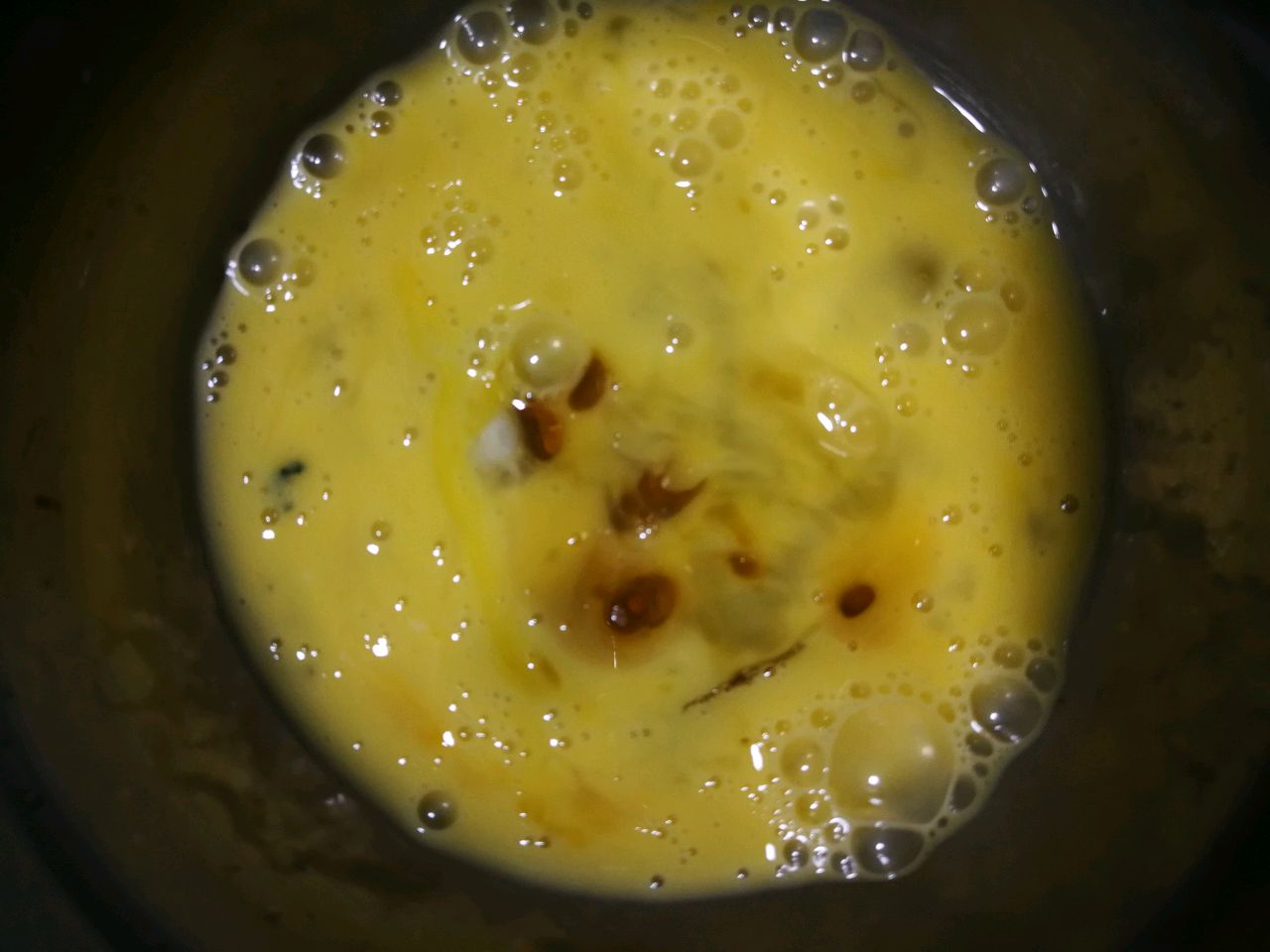 步骤4、小碗敲鸡蛋加入胡椒粉+鱼露搅拌打松散,用不粘锅摊饼切丝。