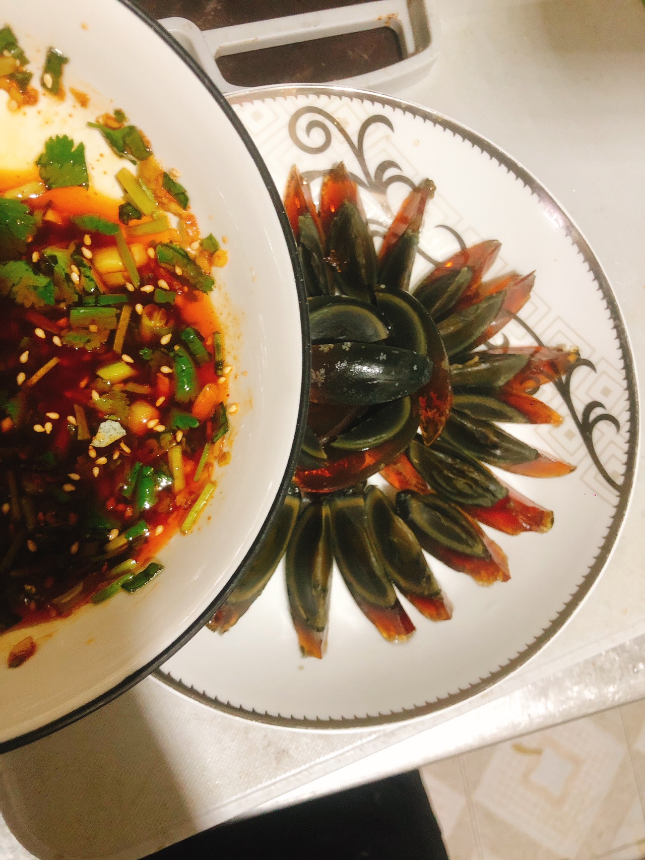很可口一道凉菜 有人喜欢流心的 个人不太喜欢所以煮了它 调料都是一样的