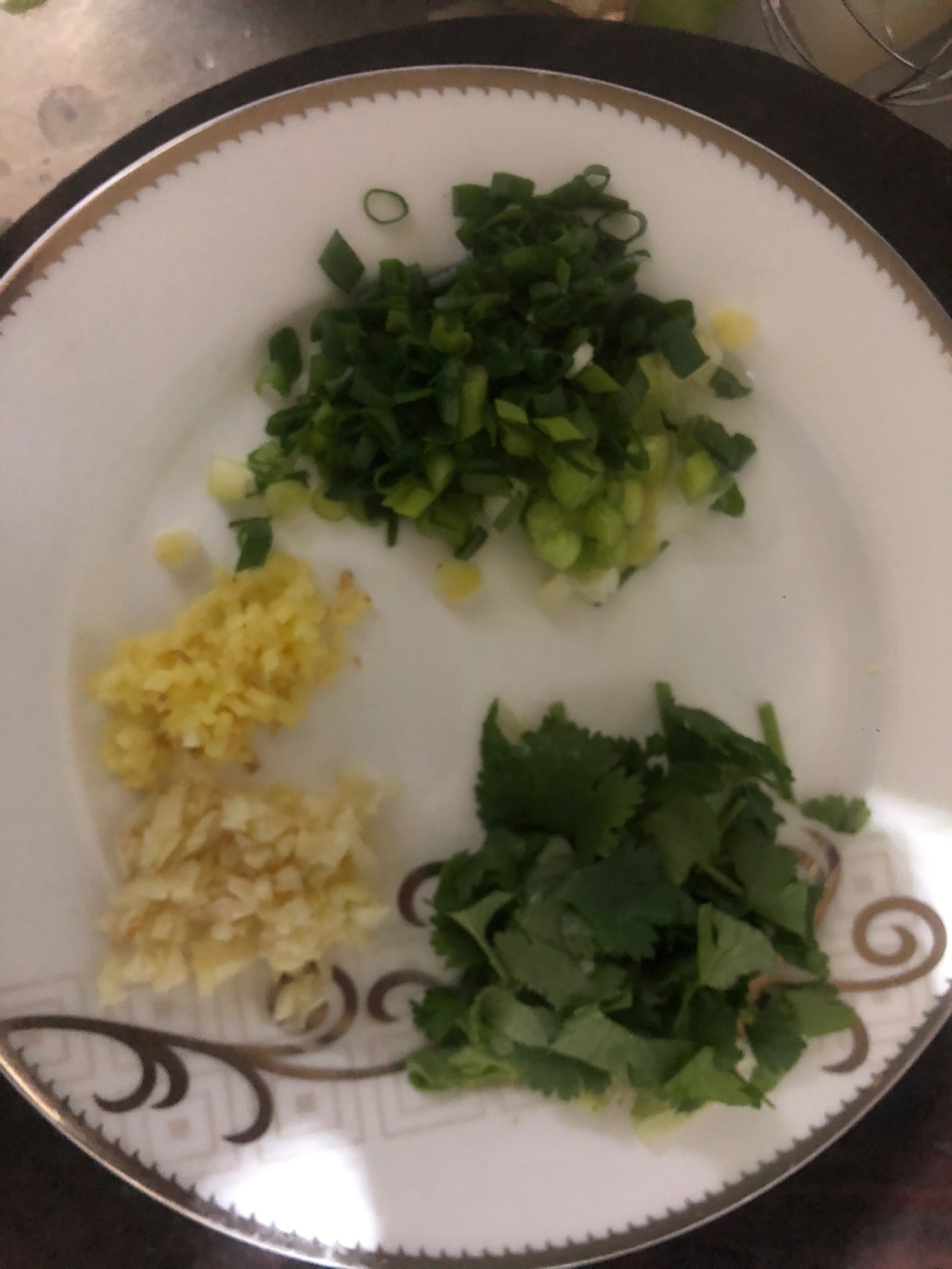 辅料:姜末适量、香菜适量、东古酱油4汤匙、辣椒粉适量、花椒粉适量、陈醋半勺、盐适量、鸡精适量、白糖半汤匙、香油1汤匙、红油1汤匙、芝麻适量克、香菜2根
