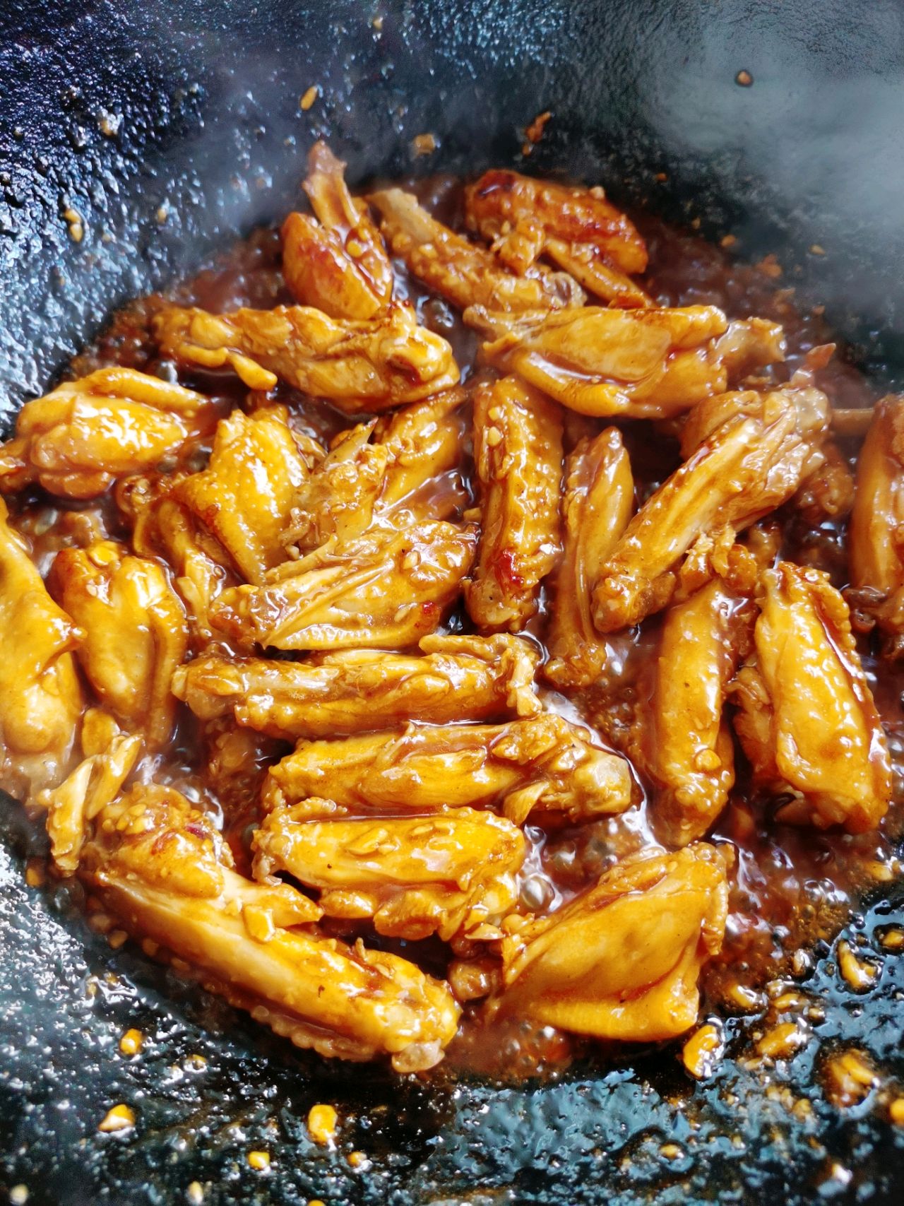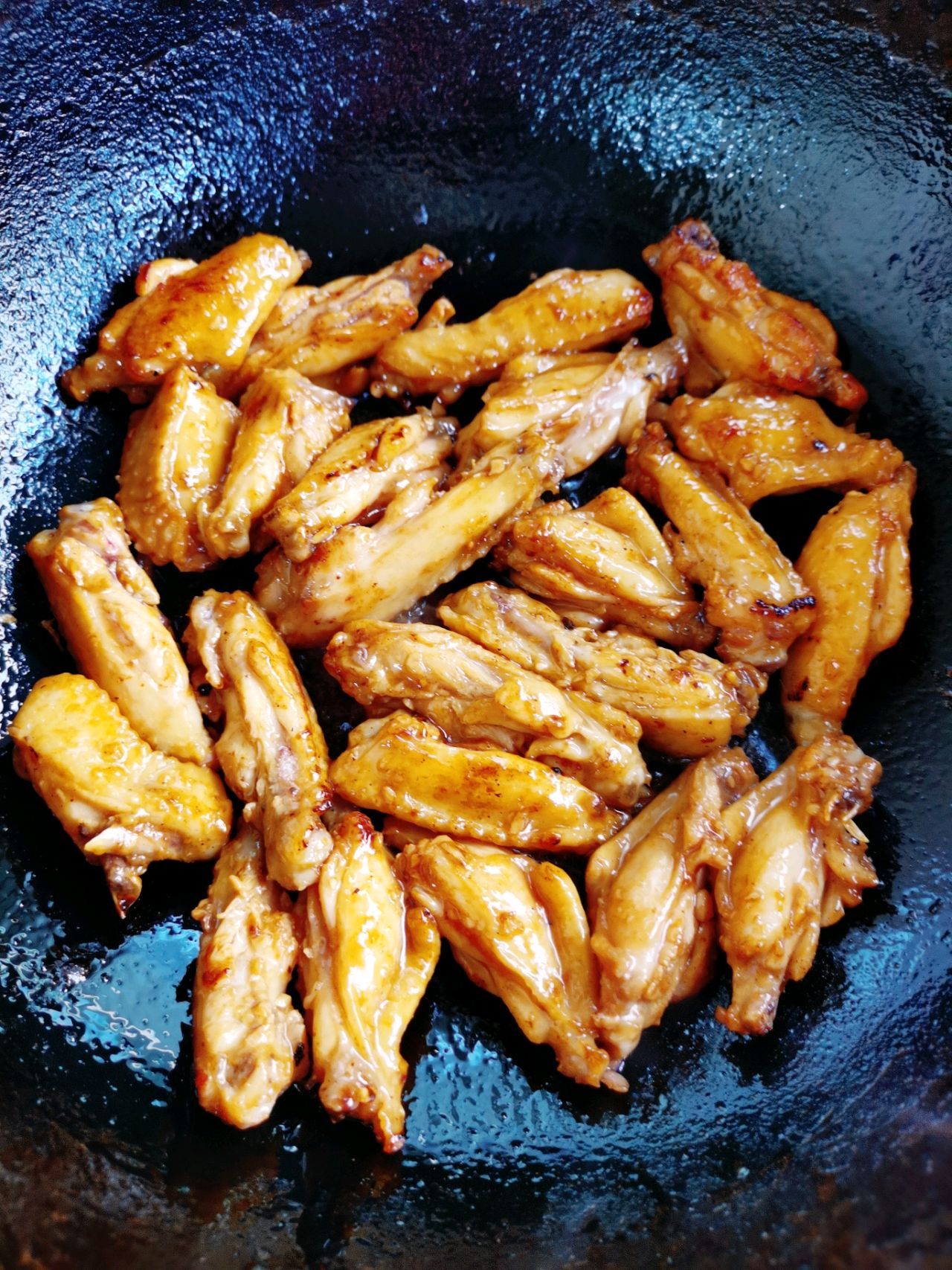 步骤5、再次起锅,放一点油,加入鸡翅,煸炒。