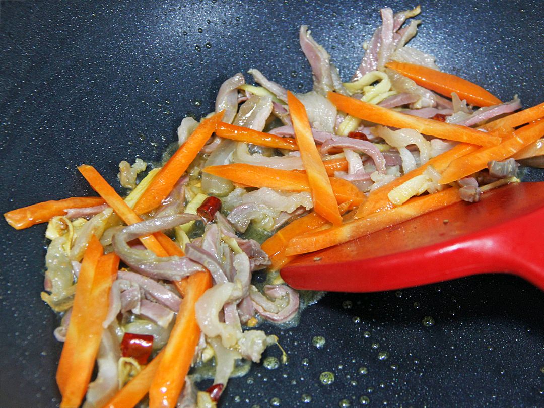 辅料:胡萝卜1根、红辣椒1个、生抽1勺、生姜1块、干辣椒1个、金龙鱼外婆乡小榨菜籽油20克、蚝油1勺
