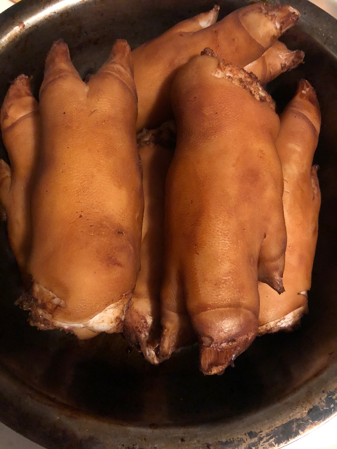 步骤1、猪蹄洗净焯水,我是热水下锅,冷水下锅会粘皮,不好看