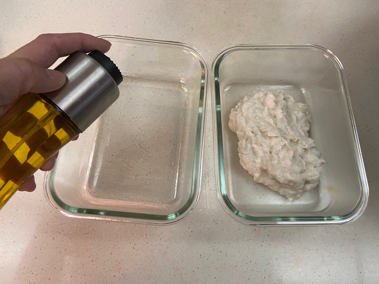 步骤14、准备放萝卜糕的容器,喷油或比较好取下