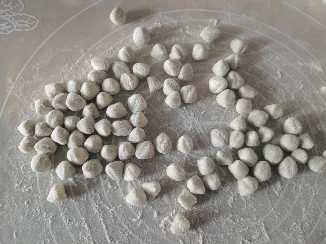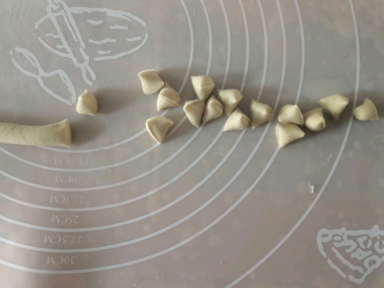 步骤4、揉成小拇指粗细的长条,切成指甲盖大小。