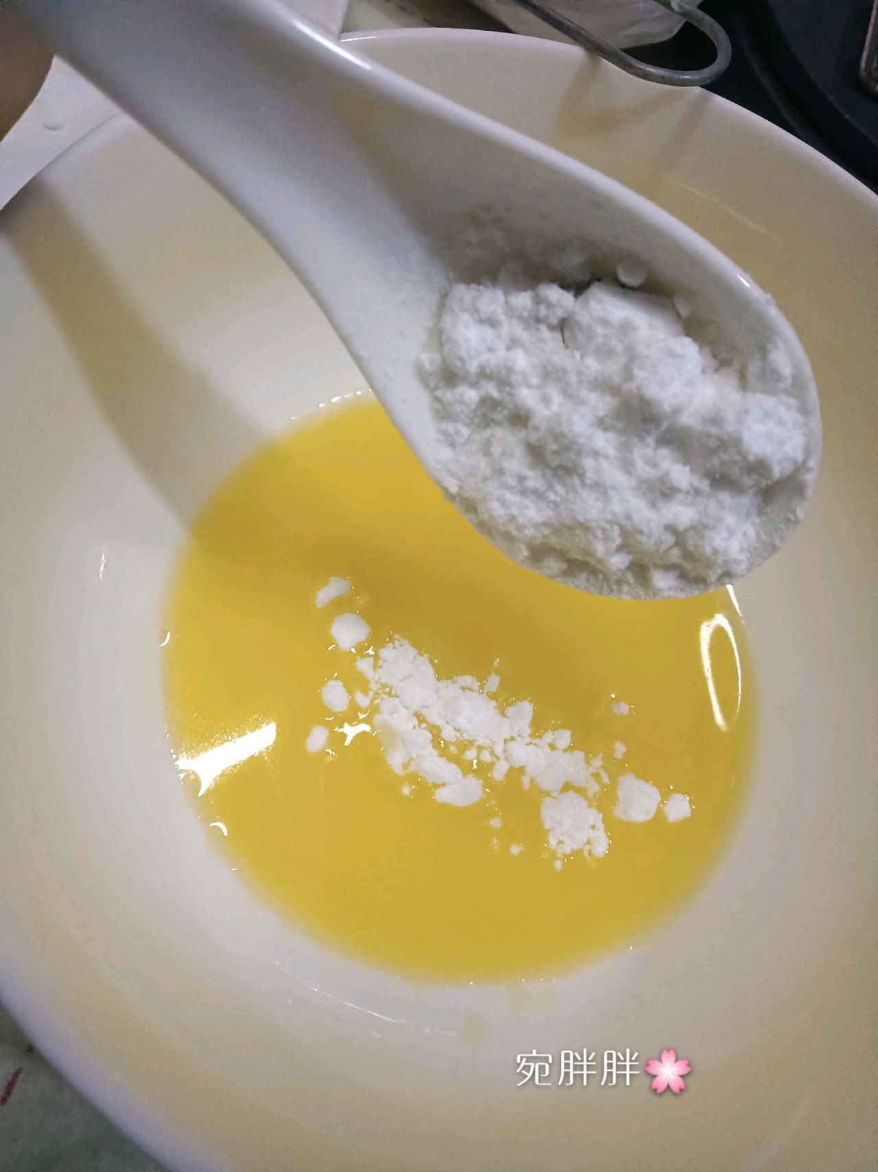 步骤2、加入糖霜,我用的是展艺的!再加入就少许盐进行搅拌