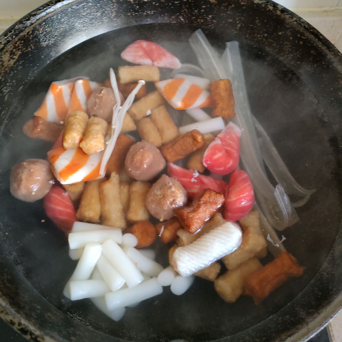 主料:海底捞牛油火锅底料2/3包、火锅丸子适量