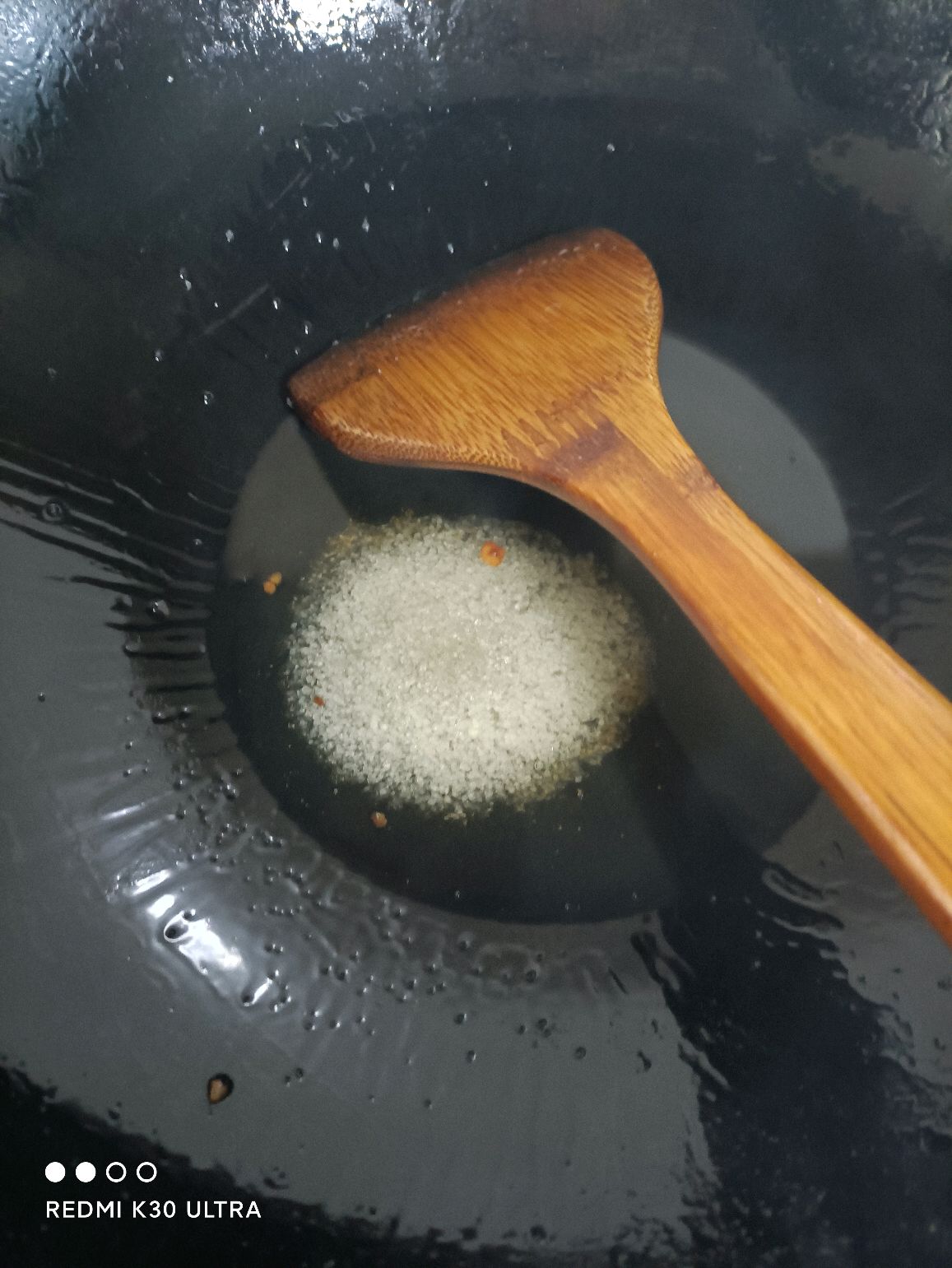 步骤12、炒好糖色后,小火加入大料炸香后加入牛肉炒
