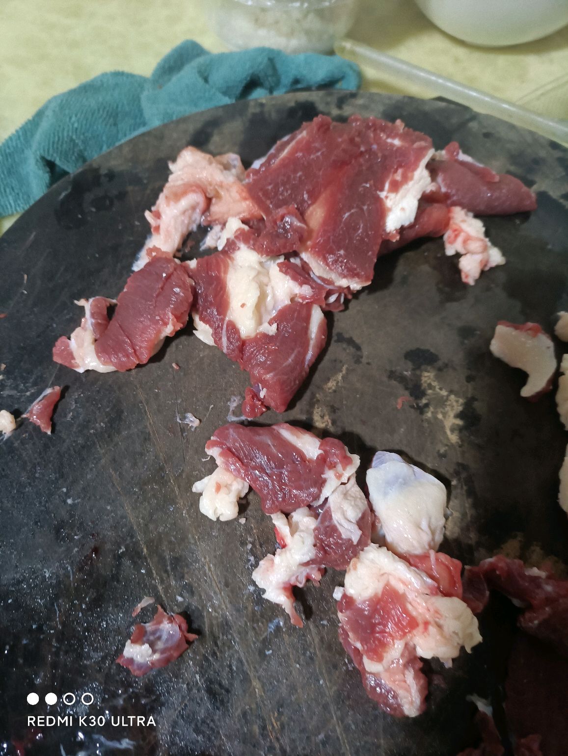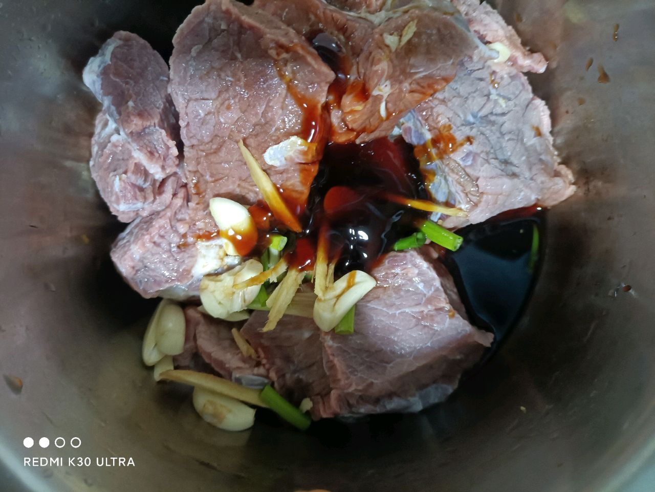 步骤1、先把牛腱肉的筋头巴脑的东西去掉