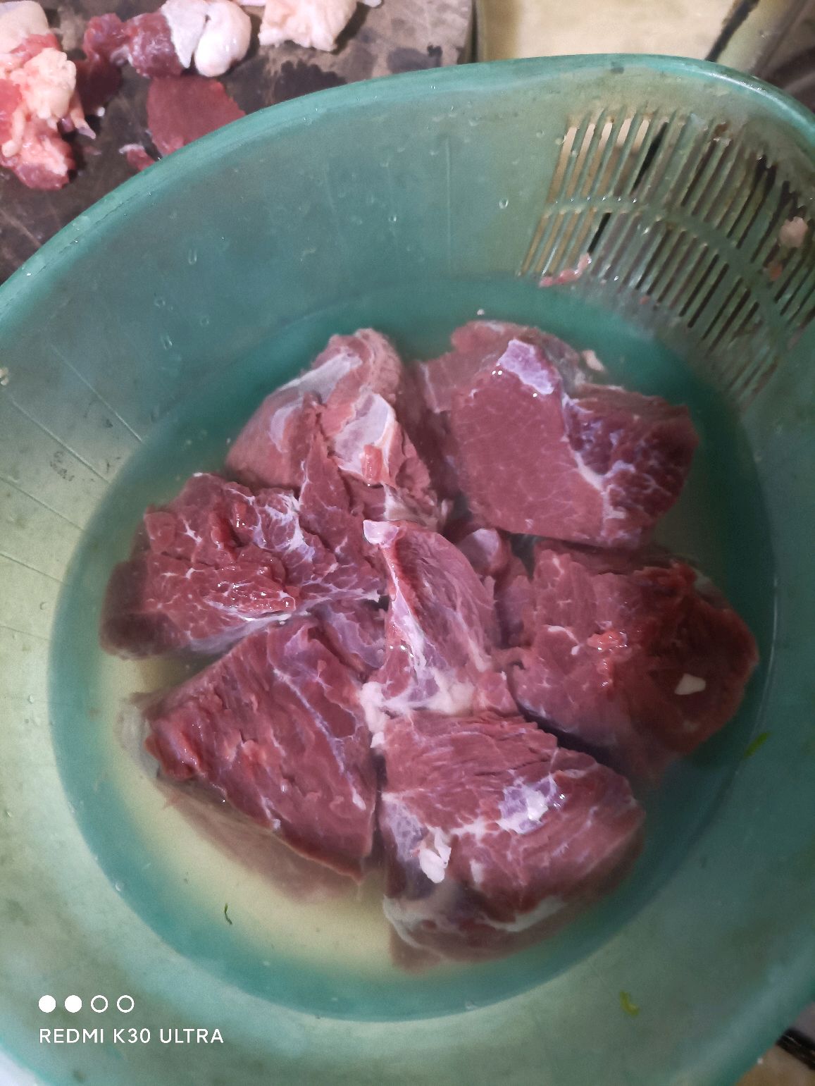 步骤3、泡去血水,中间换了二次水,泡一小时