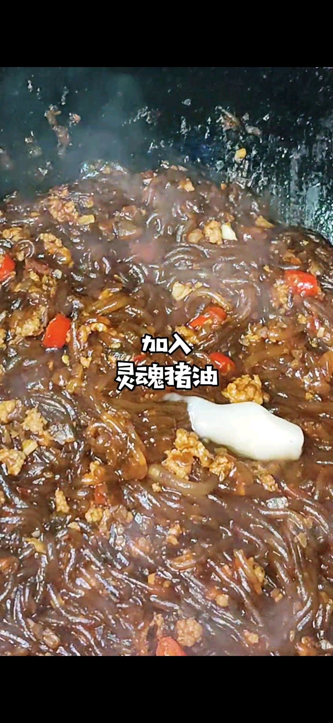 步骤2、根据视频爆香配料加入适量开水,然后才加入粉条焖煮至合适口感。