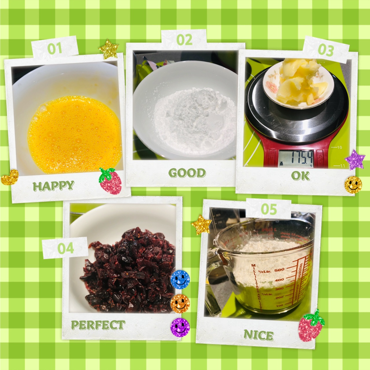 主料:蔓越莓干80克、低筋粉(蛋糕粉)200克